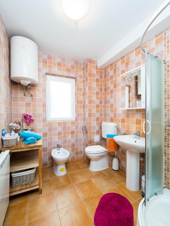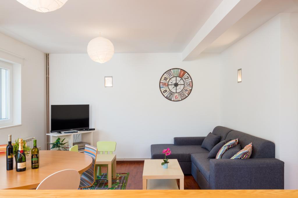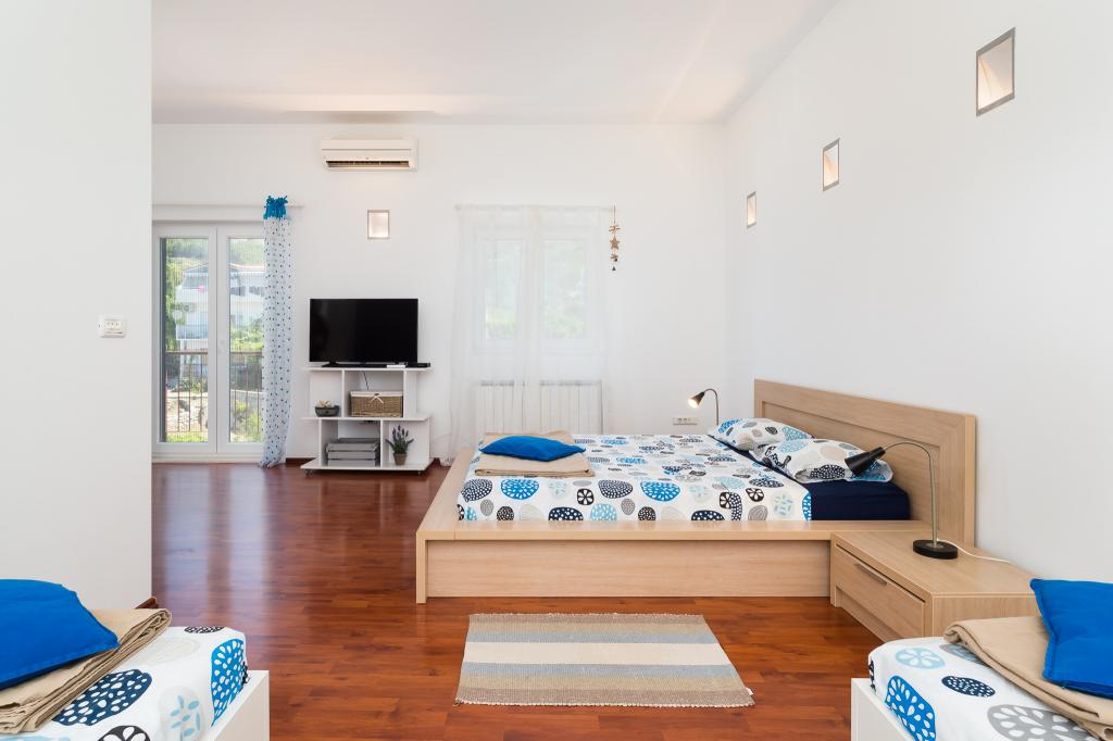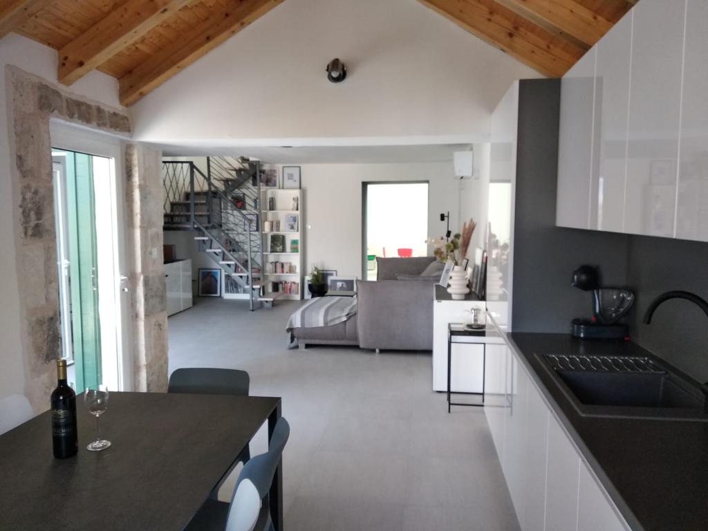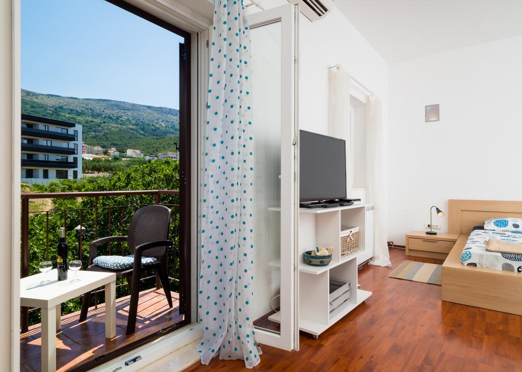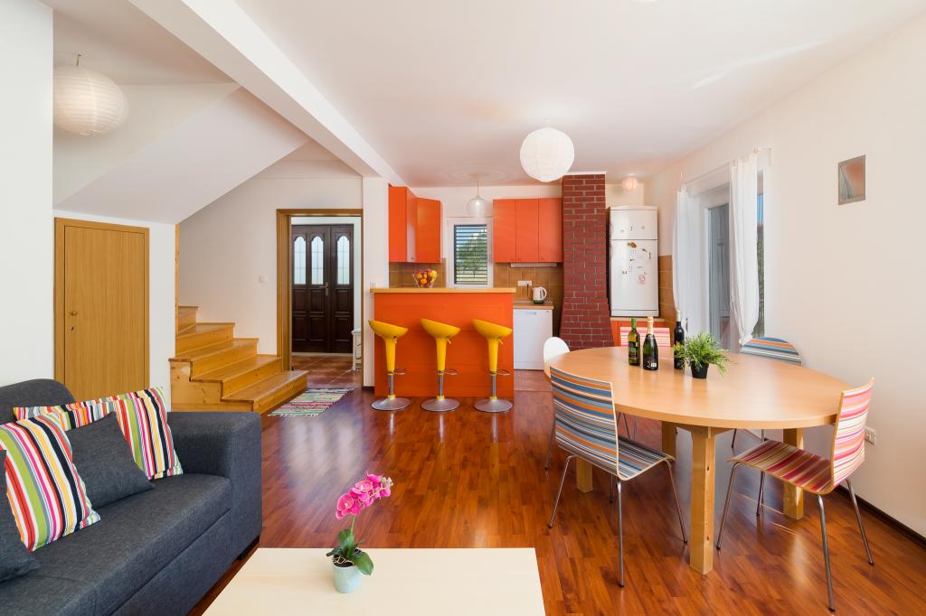 Fully furnished duplex apartment of 90 square meters in St. Martin, Podstrana 5 minutes walk from the sea. For your safety path to the sea goes under the main road landscaped promenade. On the top floor, which functions as a one room are 2 balconies (one to the north and the other to the southwest), 3 are beds - 1 double for 2 people and 2 beds for one person and on the lower floor corner sofa bed on which can be placed 2 people. If necessary, we can provide a cot at poitfa bed.