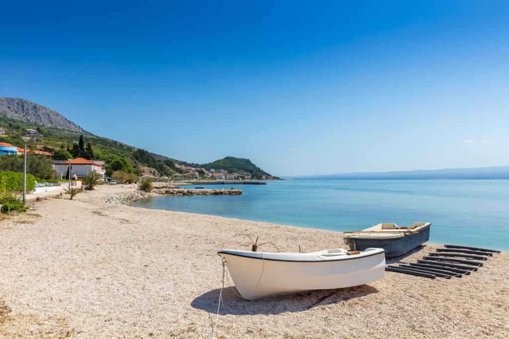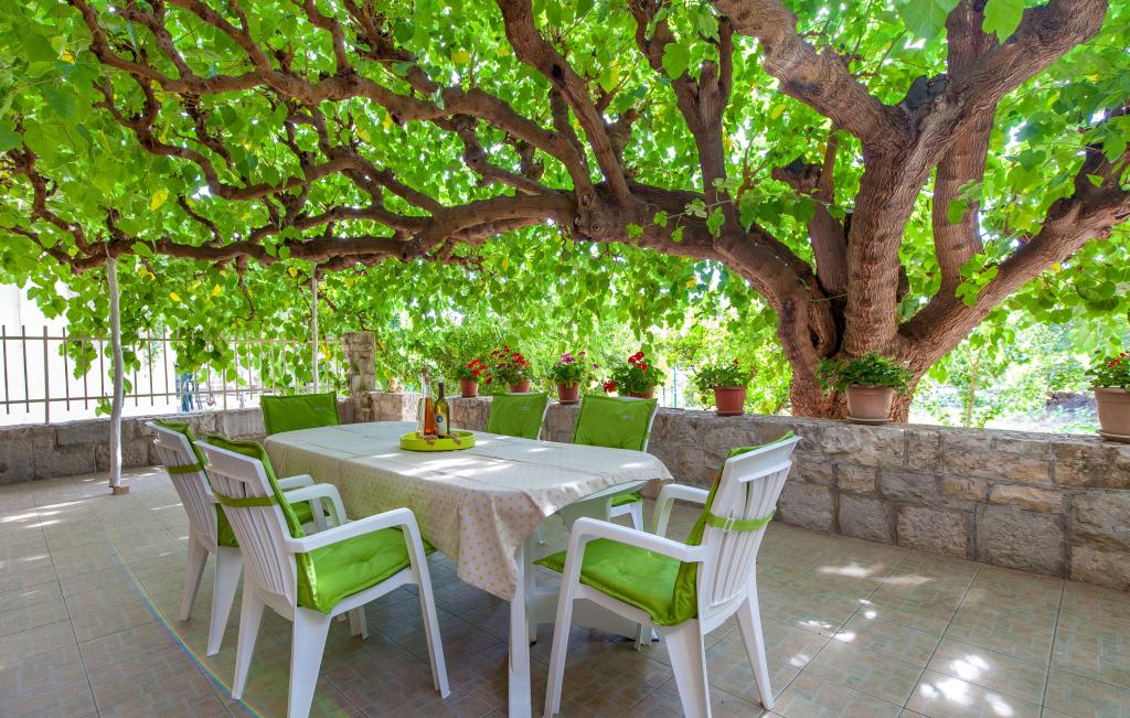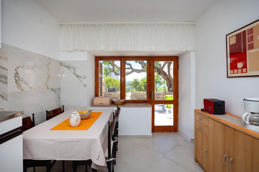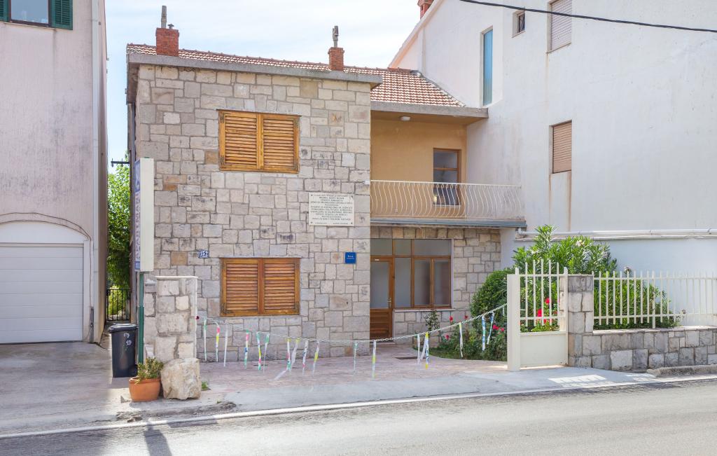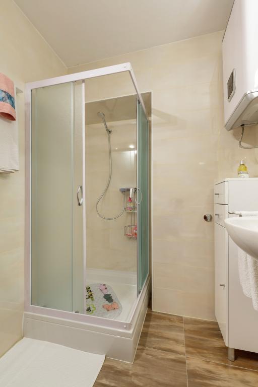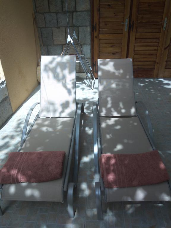 We rent a fully and modernly equipped stone house, 182 m2. The house is 15 m from the road (north side) and 60 m from the sea (south side). In front of the entrance to the house there is a parking space for 2 cars. On the ground floor there is a kitchen, a large living room, a bathroom, a pantry and another utility room where there is a washing machine, ironing board, umbrellas... From the kitchen and the living room you can exit to a large terrace, 70 m2 with natural shade from a wild mulberry tree. In front of the terrace is a small, beautiful garden with an outdoor shower and barbecue. A 1.5 m wide path leads from the garden to the beach. There is no need to cross the road, so children can go to the beach without being accompanied by an adult. Upstairs there are 3 bedrooms: 2 with a double bed, which open onto a large balcony with tables and chairs. The rooms have a sea view. On the north side there is another bedroom with two single beds. Upstairs there is another large bathroom.