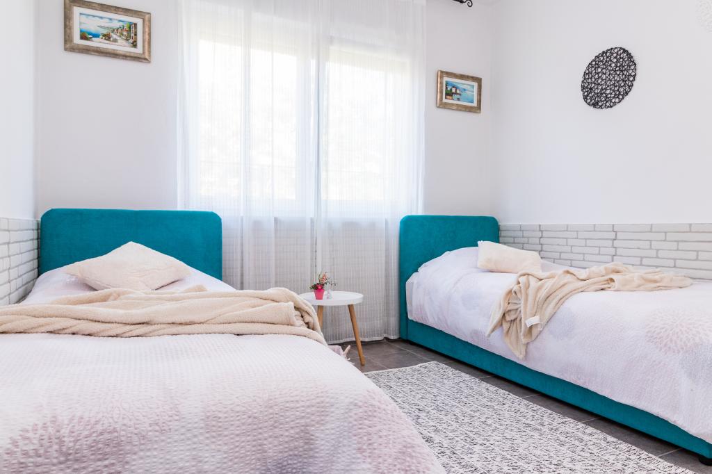 Holiday home in Pomer, a small village near Medulin. The house is surrounded by greenery, garden is big 600m, has two parking spaces, grill, terrace, garden furniture. It is 300 m from the sea and 500 meters from the beach. The house is a large 143 m2, has 3 bedrooms, living room, kitchen, dining room and two bathrooms. In Pomer we have a tennis court, a playground for football, handball, basketball, park for children, surf center, diving center, fitness park. The place is located by the sea, surrounded by pine trees. In the off season we offer the possibility to rent only part of the house as a studio apartment for two people, and we adjust the price.