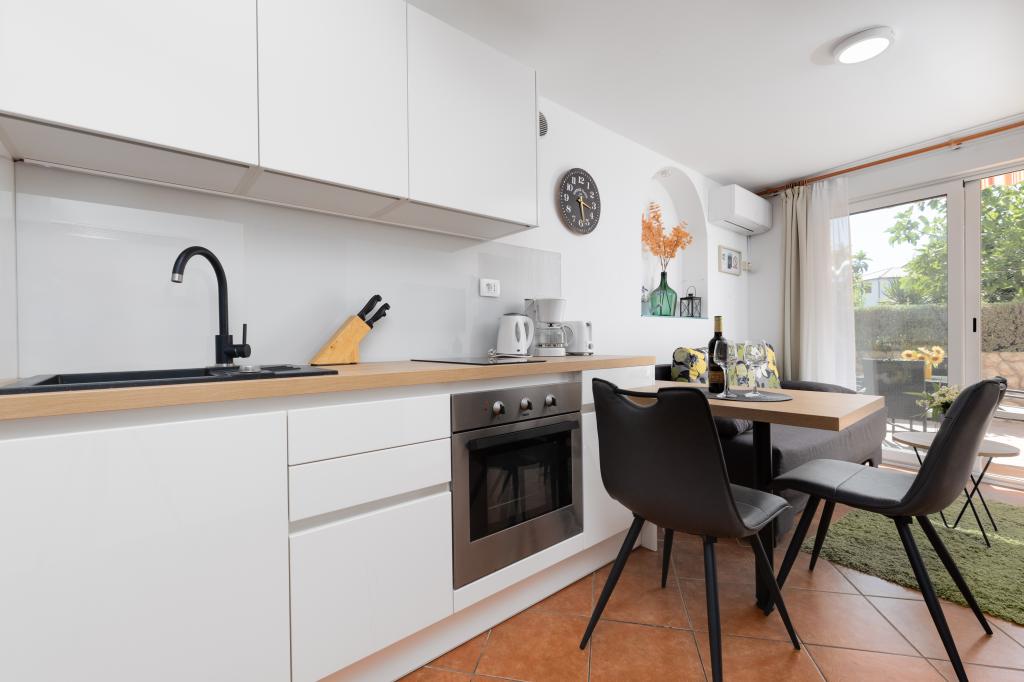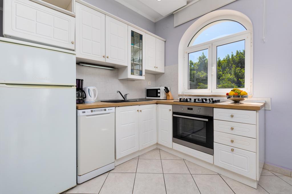 A cozy and tidy house located in a quiet environment, with a beautifully landscaped garden and a covered terrace ideal for outdoor living. The garden is horticulturally decorated, with a lawn, flowers and Mediterranean plants, and provides privacy and a pleasant atmosphere for rest and relaxation. The restaurant and the beach are only a two-minute walk from the house.