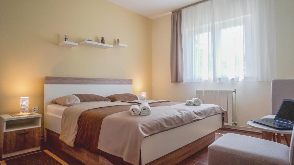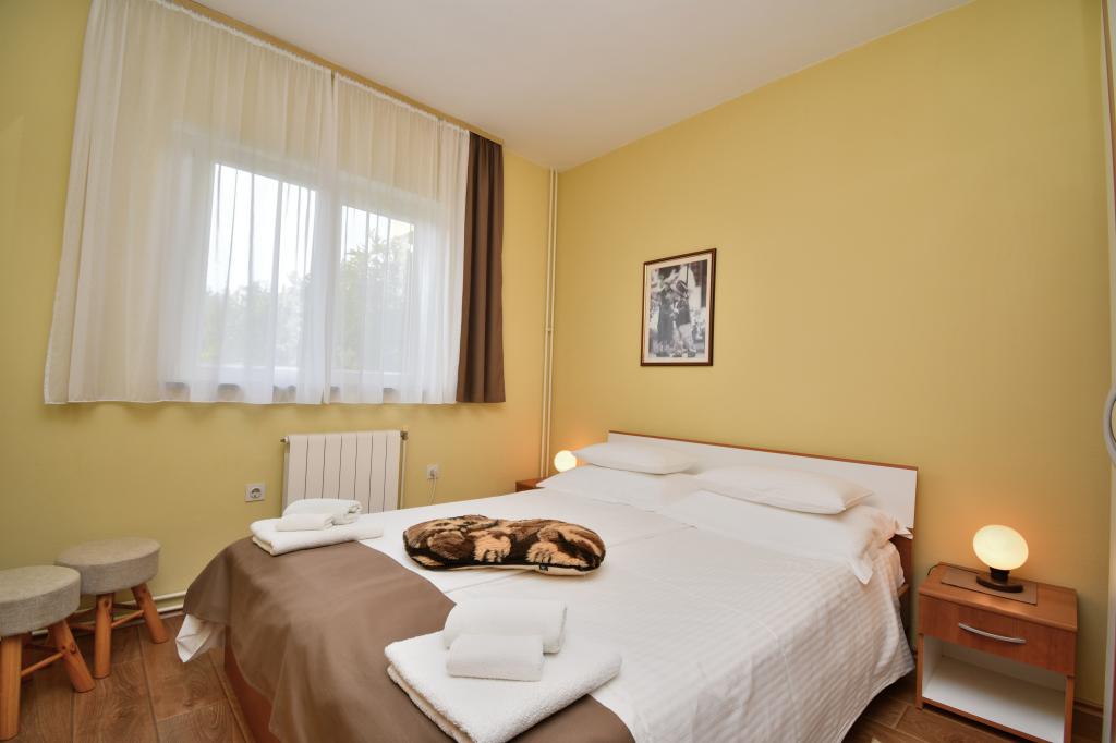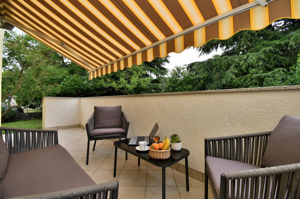 We are located in the tourist area of Poreč, the Špadići settlement. Our apartment consists of 2 bedrooms with double beds, kitchen and dining room, hallway, and bathroom with shower, toilet and bidet. The apartment has everything you need to make your vacation a real vacation. All bed linen is available, as well as complete utensils for eating and drinking, fridge, coffee machine, electric stove, microwave oven, TV with satellite reception and in addition you have free internet access with unlimited use. In front of the apartment there is a terrace with a table and chairs, which is protected by a sun awning. At the end of the terrace, you can also use the grill, which you can get upon your request. Apartment Brijuni is located only 300 m from the beautifully decorated beaches of the crystal clear sea, where there are also shops, restaurants, coffee bars, pizzerias, etc. The center of the old part of Poreč is about 800 m away, of course you don't need a car, because you can easily walk to About 15 minutes or you can use the small tourist train.