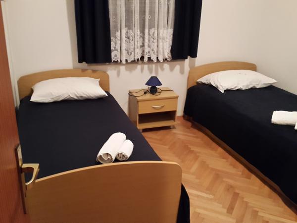 Our family house is located in a new, peaceful tourist district of Porec, 200m from the beach, restaurants, shops and 800m from the city center. It has four apartments with one, two and three bedrooms, kitchen, bathroom with shower or whirlpool bath, and balcony. The apartments have air conditioning, satellite-TV. Apartments are equipped with linen and towels, plus everything else that belongs in the household such as: dishes, coffee maker, microwave, etc. In the courtyard there is private parking and a playground for children.