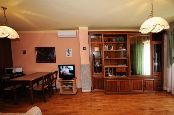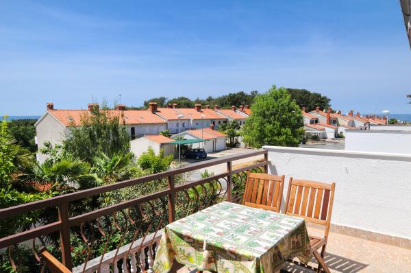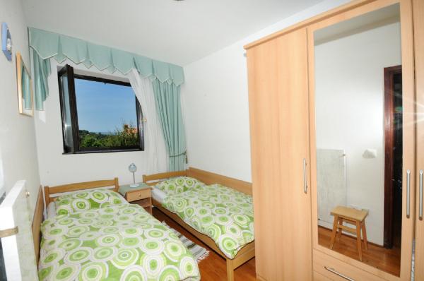 The apartment is located on the first floor of a building surrounded by greenery in a quiet elite part of Porec, above the sports center hotel Diamant. The comfortably furnished apartment consists of a spacious living room, larger and smaller bedroom, terrace, enclosed balcony, kitchen, bathroom with shower and toilet, and a hallway. From the living room, terrace and smaller bedroom has a beautiful view of the sea. The rest of the apartments facing its own beautifully landscaped garden with fruit trees and flowers in the garden is its own movable fence protected parking space for a car. It takes only a ten minute walk through the shade of pine trees to get to the Blue Flag beaches. There is also a center for water sports (parachute, banana, tubes, etc.). At a distance of only 2 km from the apartments recently opened a large water park Aquacolors Porec.