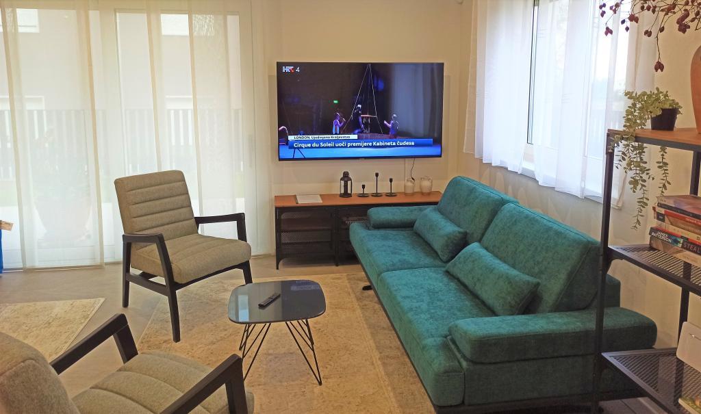 In a newly built urban villa, there is a Lemon3 apartment on the ground floor of the building with an attached landscaped garden of approx. 150 m2. The location is protected from traffic from the street, so it will provide all guests with peace and quiet in the evening hours. The furniture is completely new, mostly from Croatian manufacturers. The apartment is 65 m2 and has two bedrooms, two bathrooms with shower, living room and kitchen. In the yard there is a terrace for enjoying, sunbathing or spending time outdoors. Relax in this comfortable and beautifully decorated accommodation.