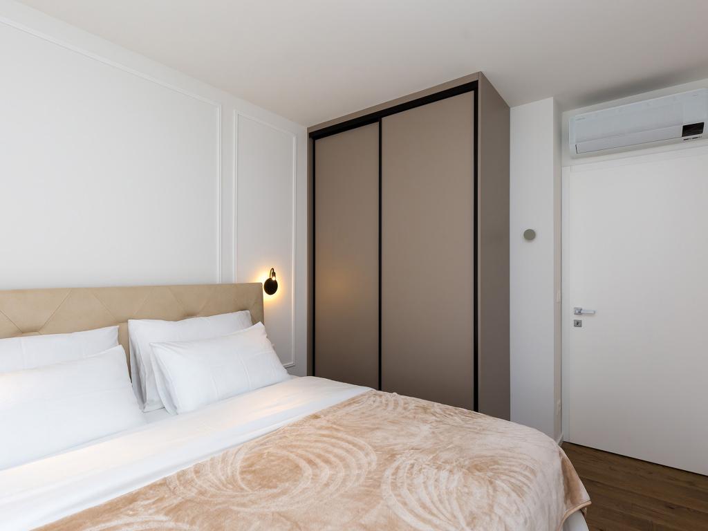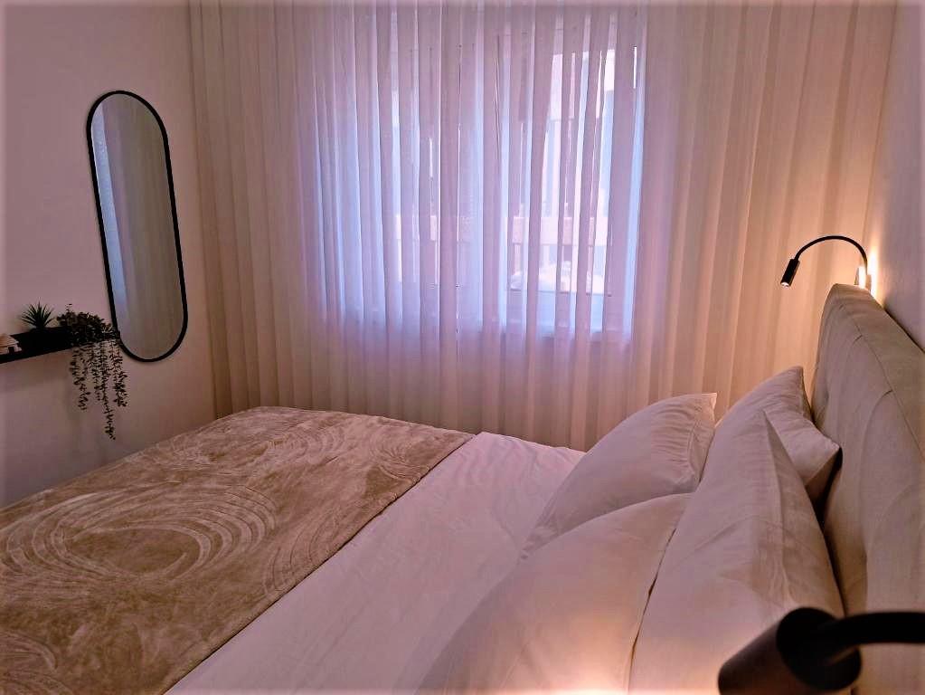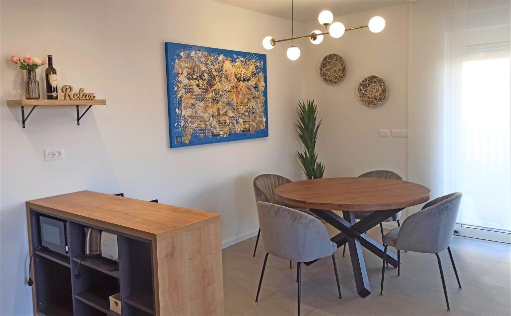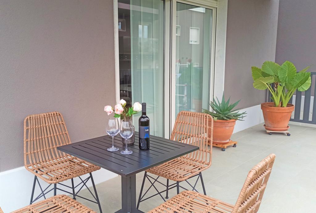 The apartment has two bedrooms with a large double bed (180x200), two bathrooms with a shower, a living room and a kitchen. It has underfloor heating and air conditioning in every room. There is a washing machine in the apartment, and the kitchen is equipped with a refrigerator with hair dryer, microwave oven, toaster, coffee machine, kettle, oven, hood. Bed linen and towels are changed once a week. From the living room there is access to the terrace and the yard, which is fenced and is located in a quiet part of the city. The yard is irrigated during night hours and maintained by the owner. Energy certificate: A+