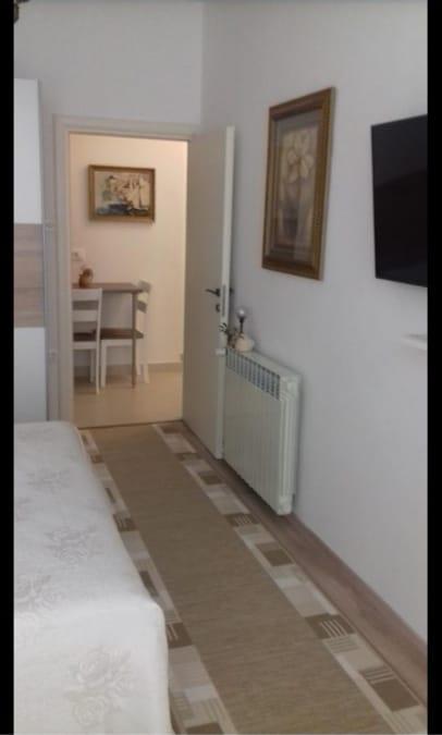 Studio apartment for 2 people located in the center of Poreč, 10 minutes walk from the old town. It takes 10 minutes on foot or 2 minutes by car to reach the first beaches. 50 meters from the studio apartment there is a supermarket, ATM, bakery, restaurant, cafes. It is equipped with air conditioning, flat TV, satellite. The kitchen is equipped for cooking, free wi-fi. Tourist tax is included in the price and no additional payments are required except for the accommodation price. Located on the first floor.