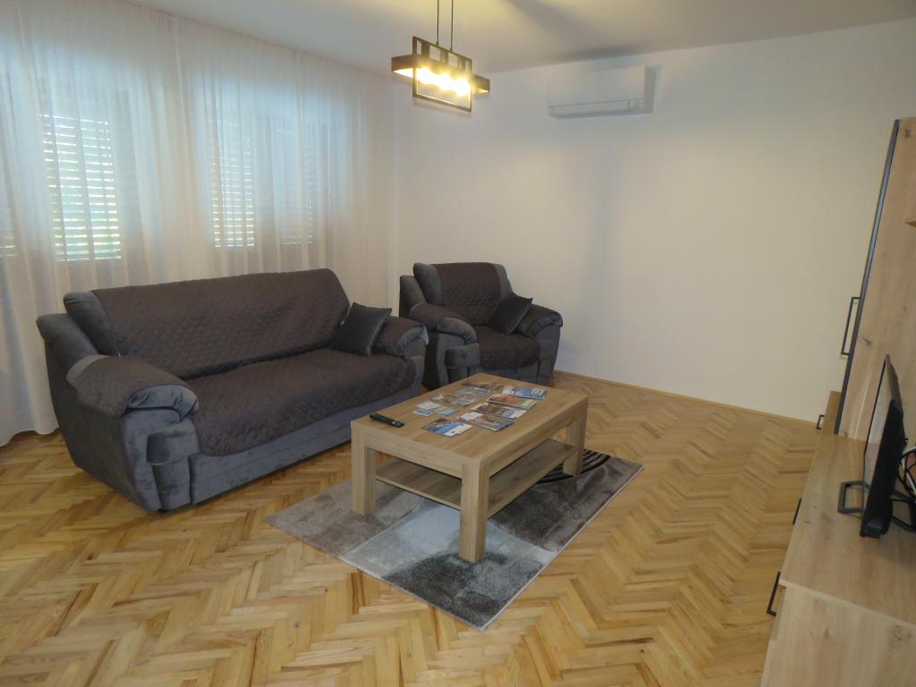 Family-type apartment, ideal for families with children. Located on the ground floor of a family house (it occupies the entire ground floor), the owners live on the first floor. There are no other apartments in the building, so peace and quiet are guaranteed. The apartment consists of two double bedrooms, one single bedroom, two bathrooms, kitchen, dining room, living room. A large open terrace, a small garden with a barbecue and a private parking are available. Welcome!