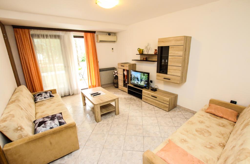 Apartments in a private house near the sea and the center. The apartment is located on the ground floor and has 2 bedrooms, a living room with an extra bed, a kitchen, a bathroom and a terrace. This accommodation has an ideal location because you can go everywhere on foot, 2 minutes to the beach and three minutes to the city center. The shop is only 50 m from the apartment. Just take your toothbrush and leave everything else to us!