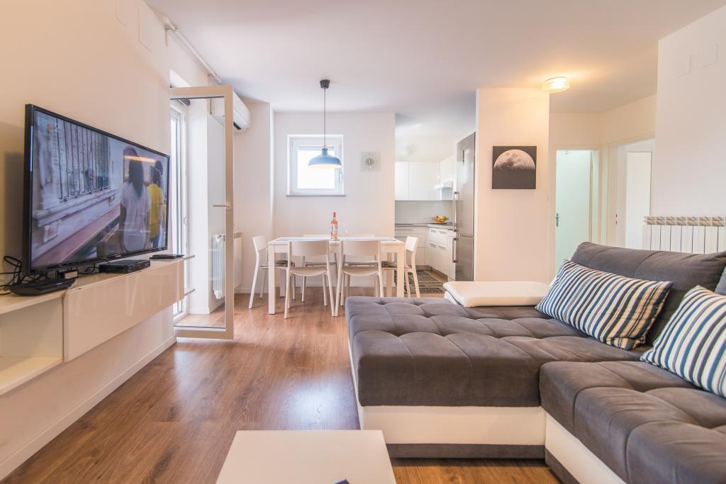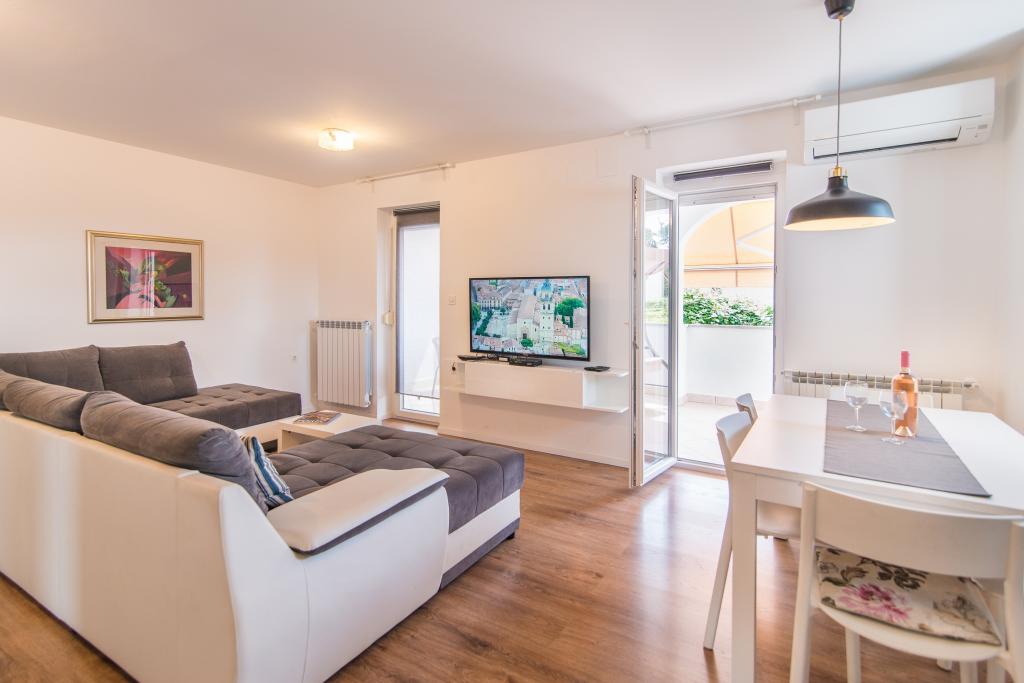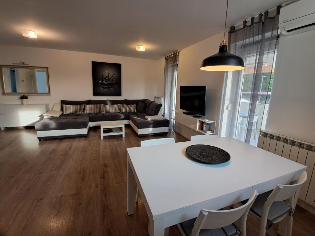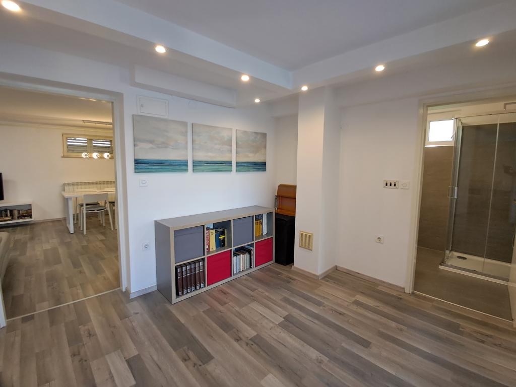 I would recommend this apartment because of their size, location and access to the sun at all times . The apartment is located on the top floor , which makes it there all the time warm. It has a balcony on which you can spend your time until the late hours of the evening. Also taking shower can take the sunbath because large window in the roof is above the cabin . The room is fully equipped . Quiet and calm area. To the sea and town 5-10 minutes walk to the supermarkets Lidl or Konzum 2 minute walk . Neighbours nice polite , The possibility of parking near the house or parking inside. Very affordable price for such conditions . I recommend vacation before the tourist season which is equally warm and cheaper. With great desire to go back there next time .