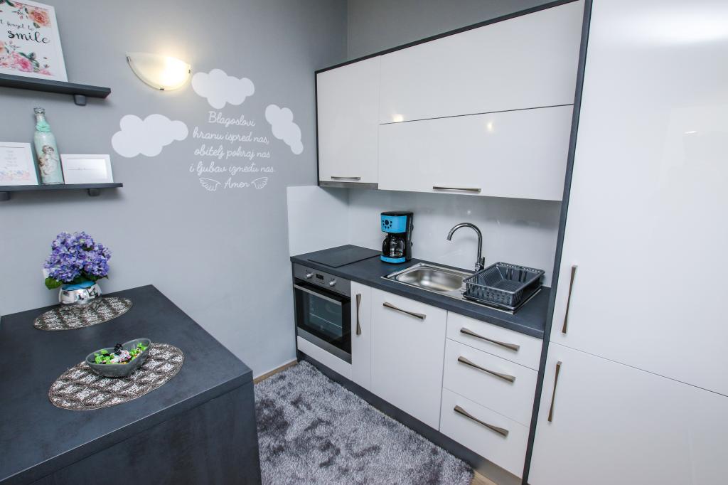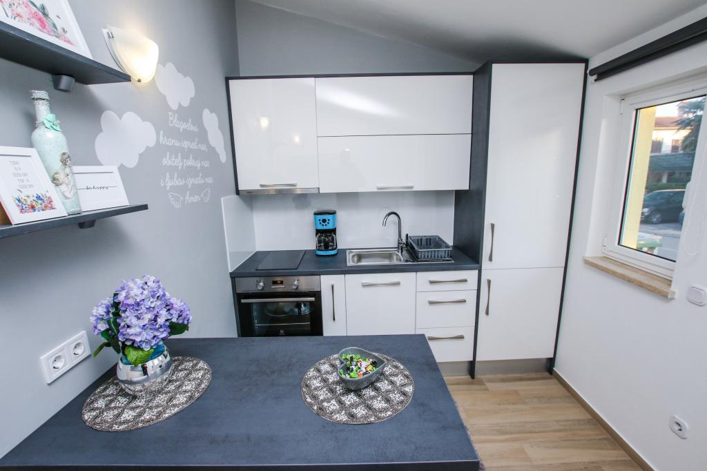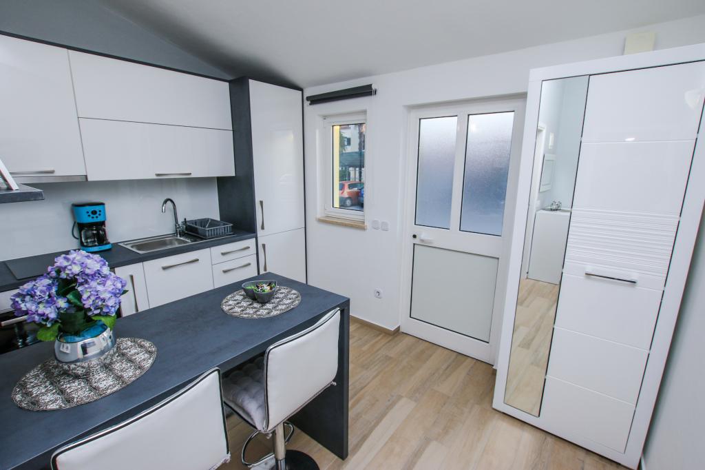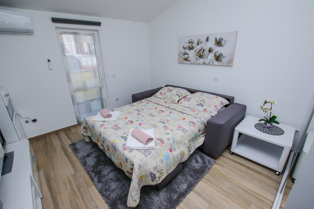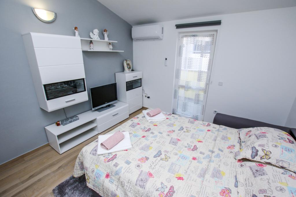 Modernly equipped apartment Tina with 2 bedrooms, living room, kitchen, garden, terrace and bathroom. Apartment Mare with 1 bedroom, a living room with a sofa bed, a kitchen, 2 terraces and a bathroom. The apartments have their own private, covered parking. Newly decorated apartment Daniela with 1 bedroom, kitchen, bathroom and terrace. In front of the apartment there is a private parking. All apartments are equipped with WiFi internet, air conditioning, washing machine. They are located about 10 minutes walk from the beach and city center.