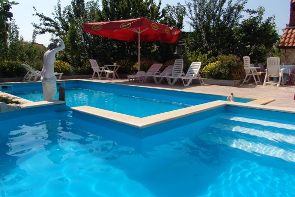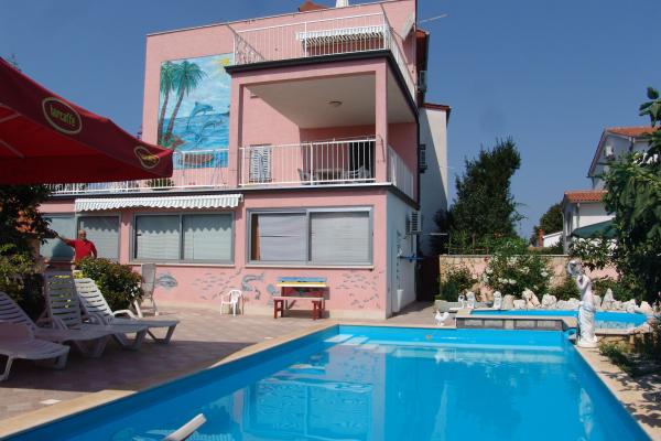 Located in a quiet part of the town of Porec in the village Vranica at lever 29a, which is only 3km from the center of the city. The beach is 1500 meters. There are 5 apartments for 2-5 persons. Categorization is A5 2, A5 2, A4 1, 1 A4 and A2 second house was built in 1995 and 2002 and 2007, was rebuilt and renovated. Each apartment has its own climate, extended terraces, satellite TV, DVD, free W-Lan Internet. The newly built swimming pool (8m x 4m), and a separate smaller pool for children are calling for a special treat. Deck chairs, shower and barbecue are a part. Parking place in the yard. Restaurants, shops, playground, hospital and remained in the vicinity.