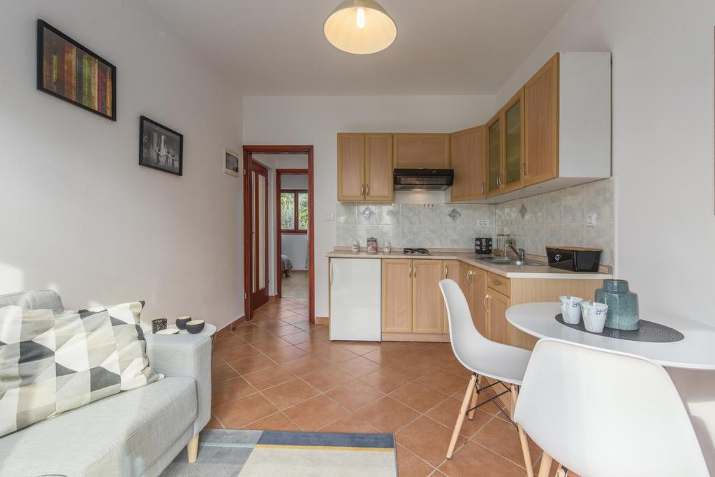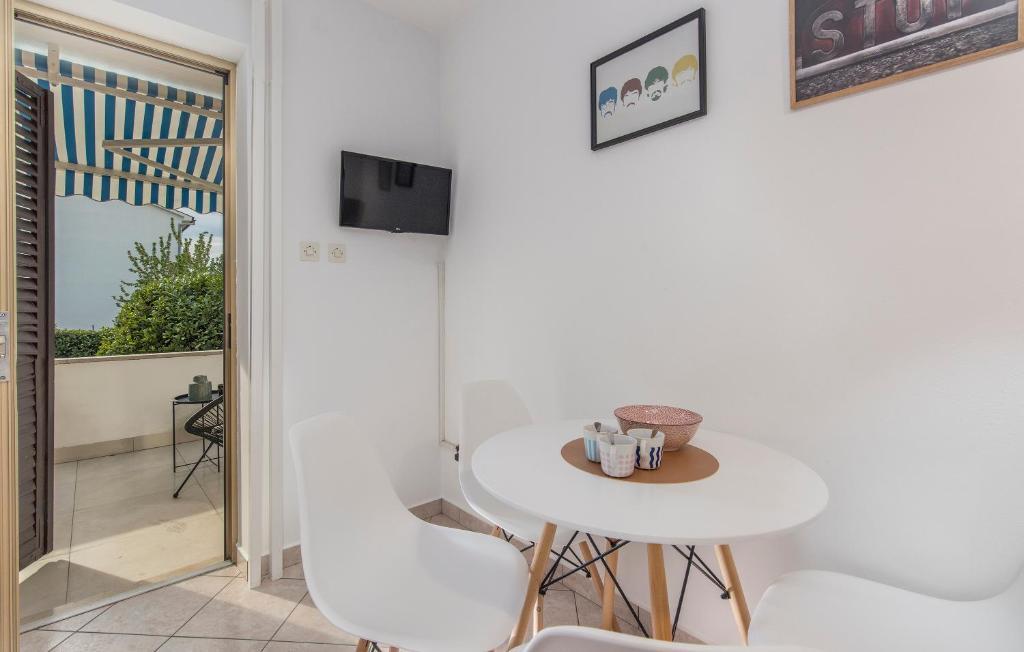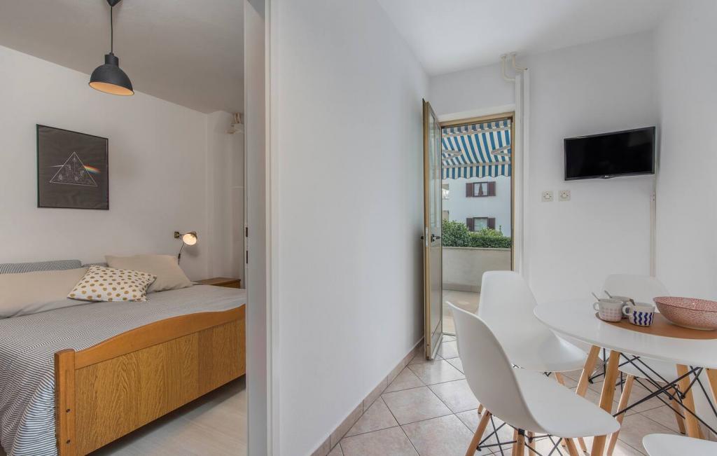 Private House and is located in an ideal zone for families with children, and for all those who want to be close to the beach and near the City center with all the summer events. It consists of twoo apartments. Apartment Morgan one room apartment is situated on the first floor. It consists of a kitchen with dining room, a living room, one bedroom with double bed and a bathroom with shower. Ideal for a couple with a private terrace. Apartment Bowie ideal for family, it consists of a kitchen with dining room, two bedrooms with double bed and a renovated bathroom with a shower. In front of the house is a terrace where you can relax after a day on the beach. The price includes parking in front of the house, Wi-fi, and use of electricity and water. Renovated bathroom in 2020.