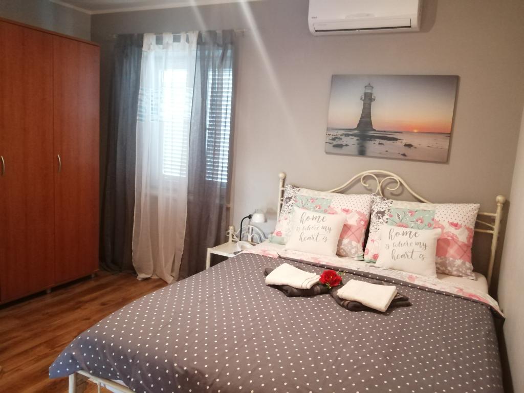 Apartments in a quiet, green oasis of a Mediterranean garden, just 10 minutes walk to the city, will allow you a relaxing and pleasant holiday. We offer three apartments, each with separate entrance, 2 bedrooms, hallway, kitchen, bathroom, terrace, air conditioning, satellite TV. oil central heating. Use of parking and internet are free. The apartments were completely renovated and furnished in 2017.