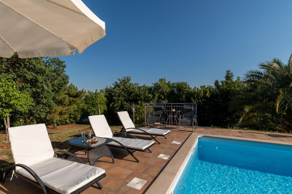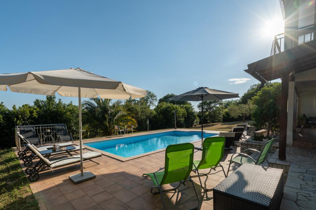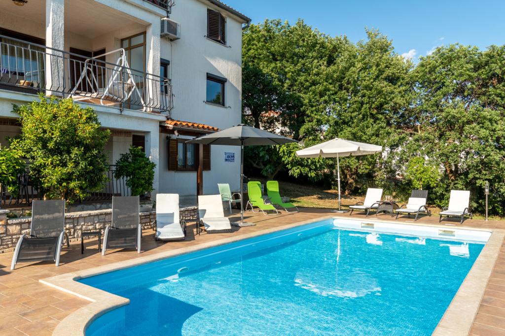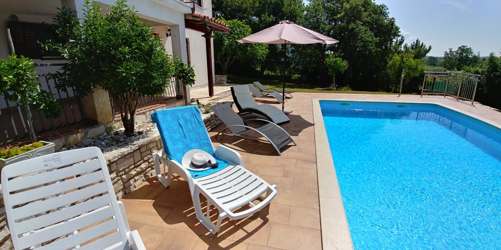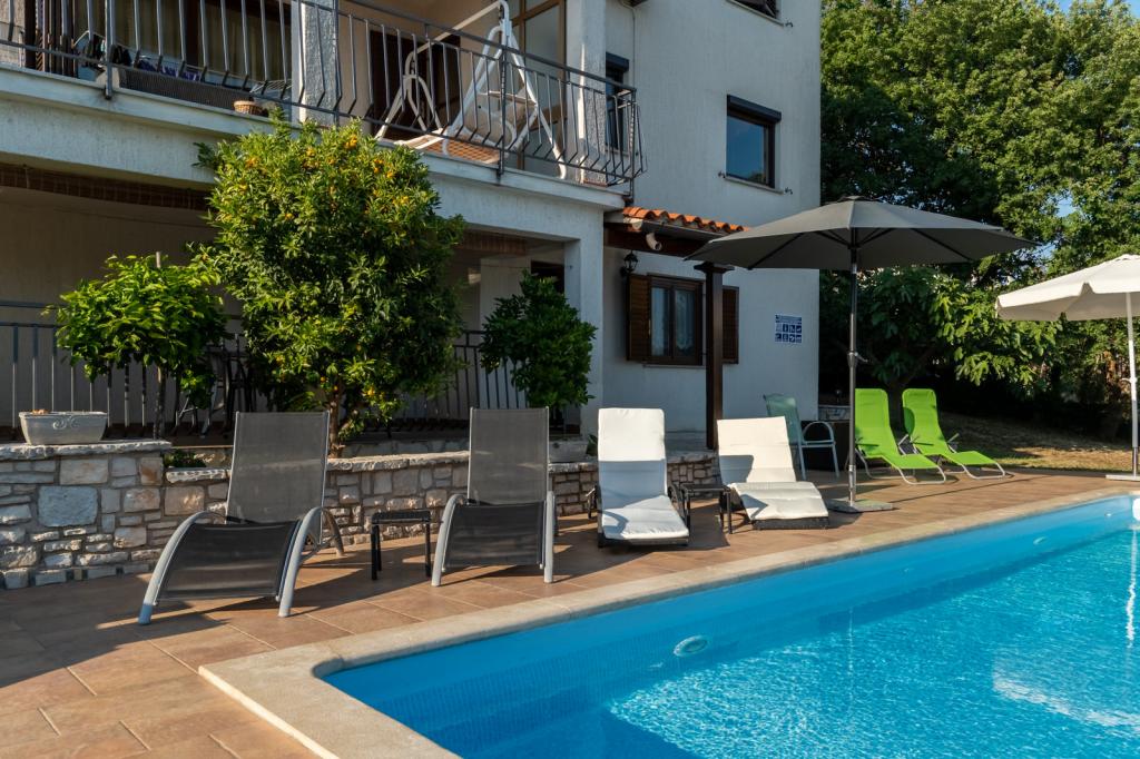 Welcome to apartments Villa Verde. We are located in a quiet village 10 minutes drive from the center of Porec. Enjoy the fresh air and the chirping of birds while relaxing in the 32m2 pool, surrounded by centuries-old oaks on an isolated 3500m2 plot. The apartments are fully equipped for a relaxing stay in a natural environment. Villa Verde apartments are intended for adults only. We offer you the opportunity to use the grill with all its equipment (I can help you with our homemade wood and indigenous Istrian wine and dessert). We offer our dear guests homemade eggs of our popcorn, which our guests are happy to feed and they reward them with homemade eggs. I hope you decide to stay in our apartments and enjoy the relaxing atmosphere of a typical Istrian village.