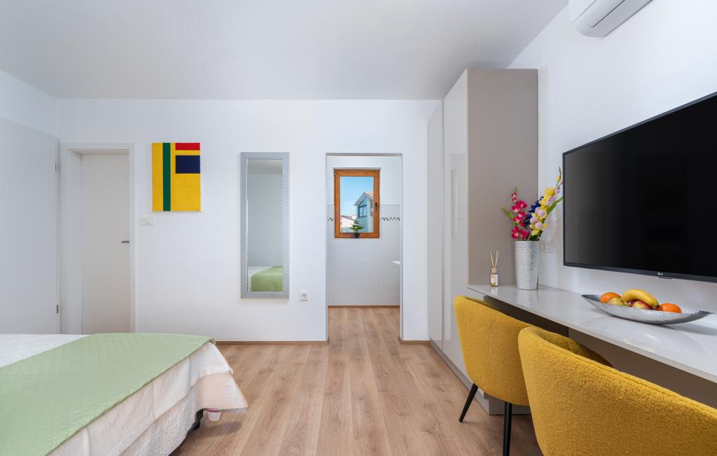 Our apartments are located in a beautiful and quiet residential area, offering a perfect escape from the summer crowds, yet close to everything. A leisurely 10-15 minute walk will take you to the beautiful Borik beach or the lively historic center of Poreč. A large supermarket is just a 4 minute walk away, which is very convenient for families.