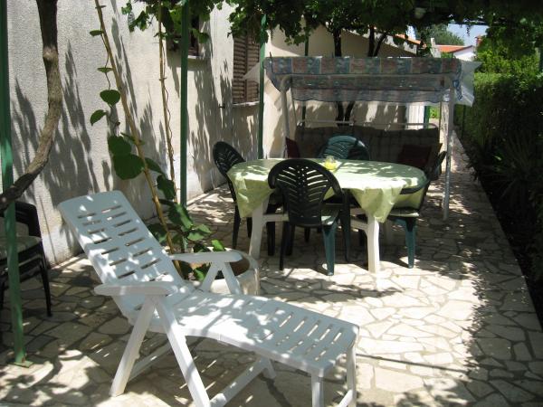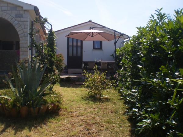 We are located in a quiet and landscaped suburb of the town of Porec by name bugs. Hospitality are a family with a long tradition of private accommodation in tourism. We love pets. Our suburb connected walking and cycling routes to the city. Nearby is a park for children. We are located near the exit from the highway. Holiday house surrounded by a beautiful and tidy yard and park with flowers. Parking is available in the courtyard. We must also point out that the kitchen has a dishwasher. Guests have access to two terraces. One front homes and the other behind.
