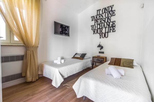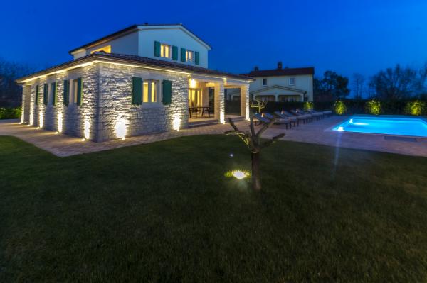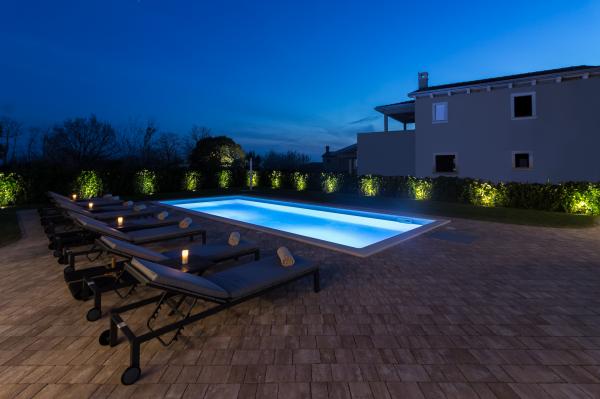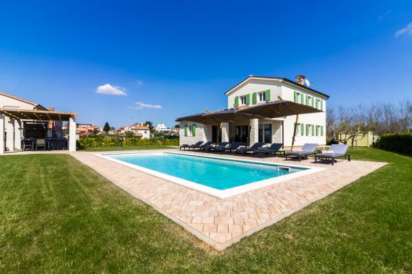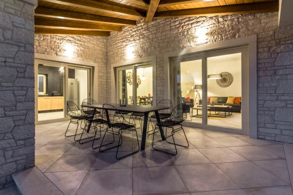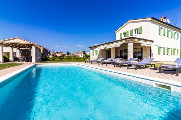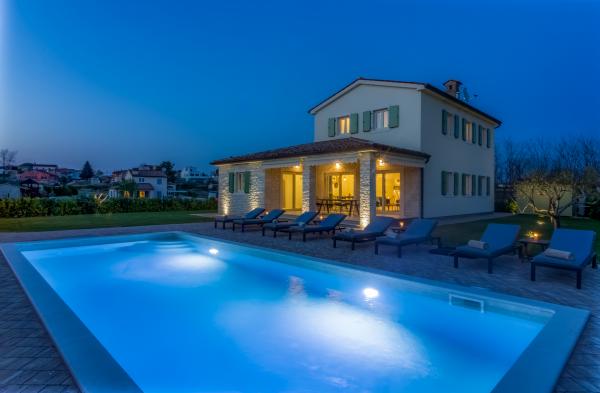 Villa Dionis is a brand new modern Villa with 4 bedrooms, modern and well equiped kitchen, 3 bathrooms, spacious living room and a great swimming pool. Every room has air condition. It is perfect choice for holiday - it is not far from the city and it is surround with beautiful nature. You will have 10 minutes with a car to first beaches. For our guest here are private parking space, teracce, barebecue in garden, sun loungers. . Maximum capacity is nine persons.