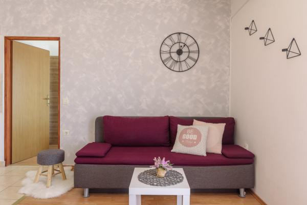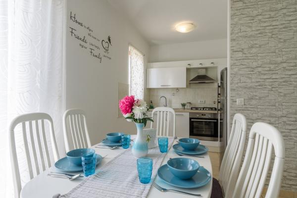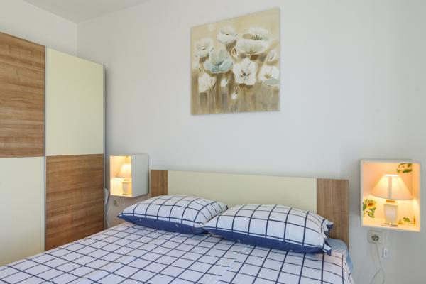 The apartments are located near the elementary school and the Gordan Demo football field. The price includes bed linen, towels, wi-fi, parking. There are no hidden costs. The center and the first beach are a 6-7 minute walk away. Close to the national parks Paklenica, Kornati, Plitvice. The apartments have a fast EV charging station.