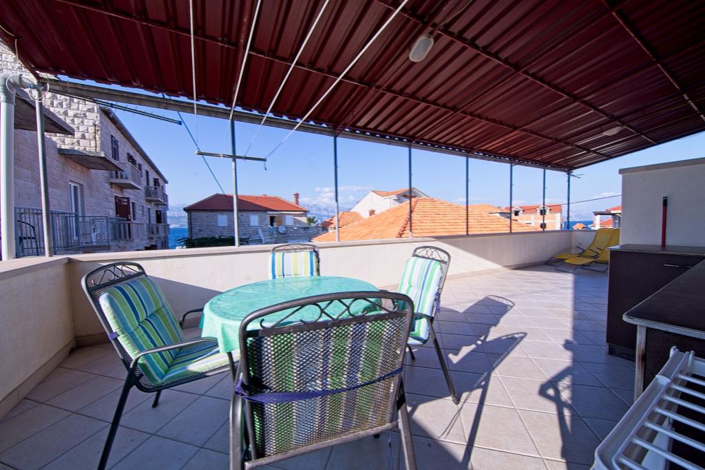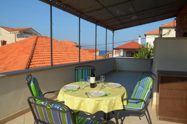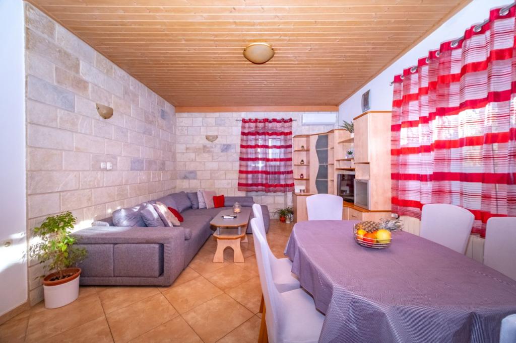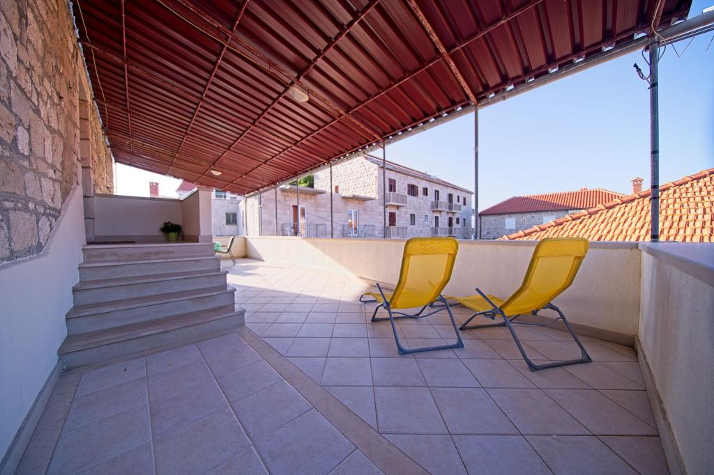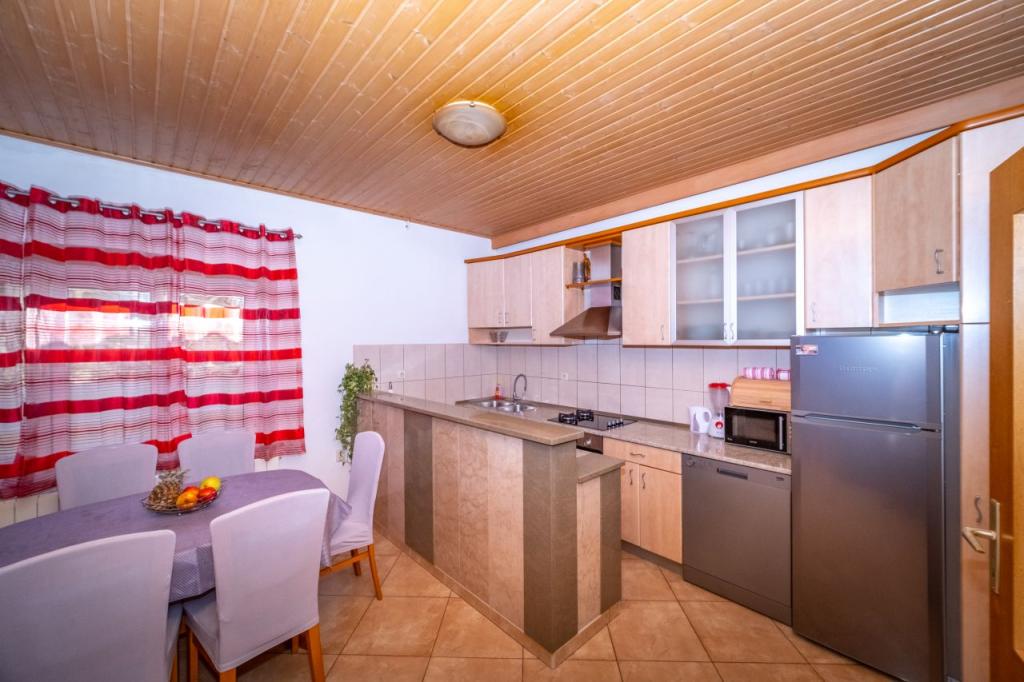 The house is located in the center of a small picturesque village of Postira. Nearby are restaurants, shops, promenades and two beautiful pebble beaches. The facility is located in a small street with no traffic and crowds. On the ground floor is an apartment with two bedrooms, one of which has a double bed and the other bunk beds. Guests are provided with air conditioning, free internet, a washing machine, a dishwasher and a spacious covered terrace. On the first floor is an apartment with three bedrooms that can accommodate up to 4 people. It is equipped with air conditioning, free internet, washing machine and dishwashers. It also has two balconies and a large covered terrace overlooking the sea. In front of the object there is a private parking with two parking spaces.