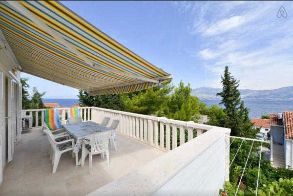 Residential tax is not included in price.We spent this year's much-anticipated vacation with the locals Brajevici, who offer two apartments in their house. We were bigger for 6 people. The accommodation is solid, spacious enough, with a nice terrace and older equipment. The island of Brac and the town of Postira, however, lost their luster in our eyes, mainly because of the hosts. These are two elderly people who, in our opinion, are not competent to rent accommodation and to deal with tourists. In all the many years we spent mainly in the Dalmatian islands and elsewhere, we have never experienced such a low culture of behavior, and inhospitability .. Tourists are an annoying factor for them, basically they are disturbed by everything, children, music, laughter, talking, opening / closing doors, awnings on the terrace, which due to the wind should close every 5 minutes and the like. They do not change towels and linens. A washing machine is available. You buy your powder, and you wash yourself !!! We have also received verbal regrets and nasty views, problems even with paying for an apartment, in short the most unforgiving vacation so far. The apartment may be suitable for tourists who are practically absent and come just to sleep. For happy families who are used to having fun playing cards etc. ... we absolutely do not recommend it.