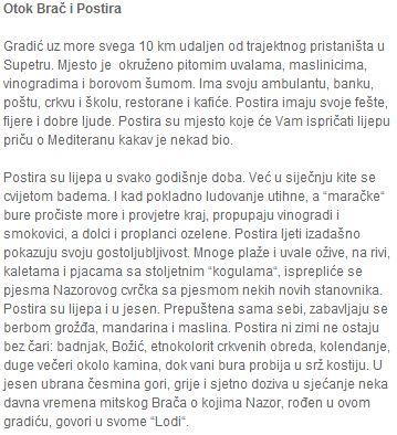 Postira is a small town on the coast. The Ruža vjetrova apartments are located in the very center of the town in the pedestrian zone. In the town itself there are several beautiful beaches that are pebbly and well-maintained. The beautiful sandy beach Lovrečina is located 3km from the town. Peace and quiet are what attracts most guests to the apartments. Beautiful beaches in the town and outside the town with natural shade, pebbly, sandy... We offer two apartments, a two-room apartment for 4 people and a one-room apartment for 2 people. At the guest's request, a cot can be added. Modernly equipped apartments have everything guests need for a pleasant vacation and relaxation. We have a washing machine, dishwasher, coffee maker, iron with stand. The apartments are air-conditioned (the two-room apartment also has an additional air conditioner in the room). Both apartments have internet access, which is included in the price. The two-room apartment has a terrace with a sea view. The one-room apartment also has a terrace and is located on the ground floor and is an independent building. The beach is 50m away.
