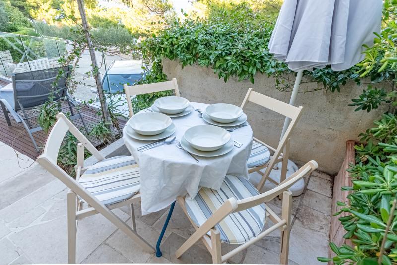 Residential tax is included in price.Villa Inga is located in the Mala Lozna bay. In the immediate vicinity of the apartment there is a cafe bar located on a rock that blends in very nicely with the natural environment and whose terraces extend all the way to a pebble beach suitable for the whole family where there is the possibility of renting deck chairs, umbrellas and a shower. A few steps away begins the rocky coast along which you can enjoy the sea and swimming in a much more intimate environment. In front of the Villa there is a road through a pine forest and along the sea that leads to the Lovrečina bay - ideal for cycling, walking, jogging, etc. 100 meters away, there is a well-stocked supermarket with an excellent offer of food, drinks and household goods. The center of Postira can be reached in about 20 minutes, by a leisurely walk along the seashore.