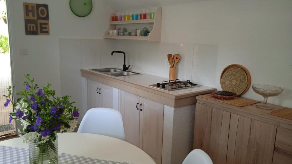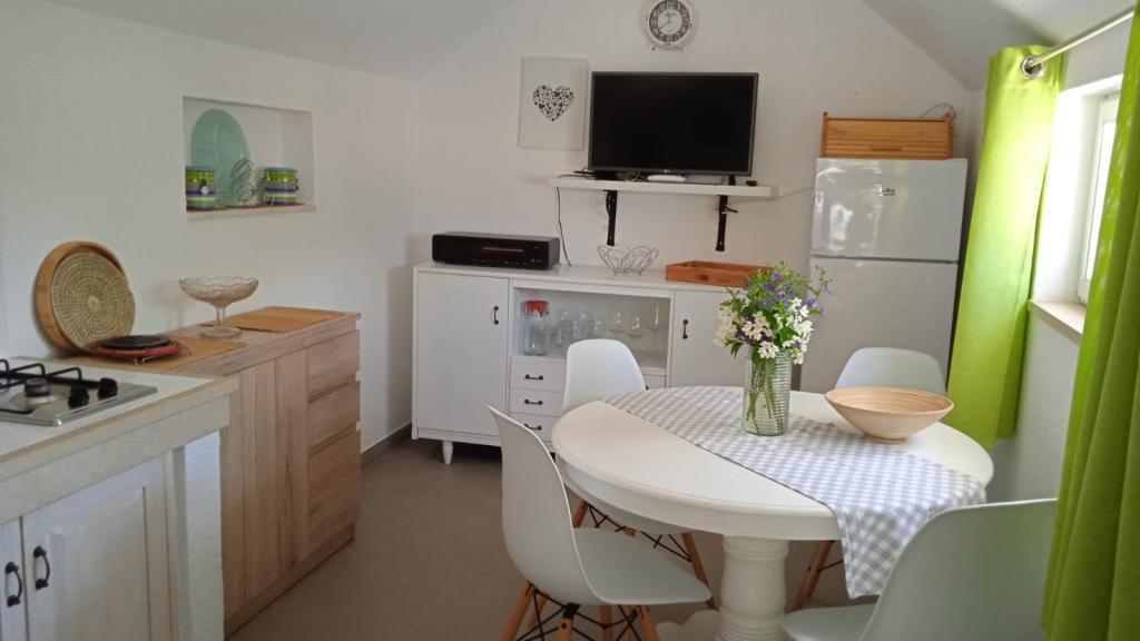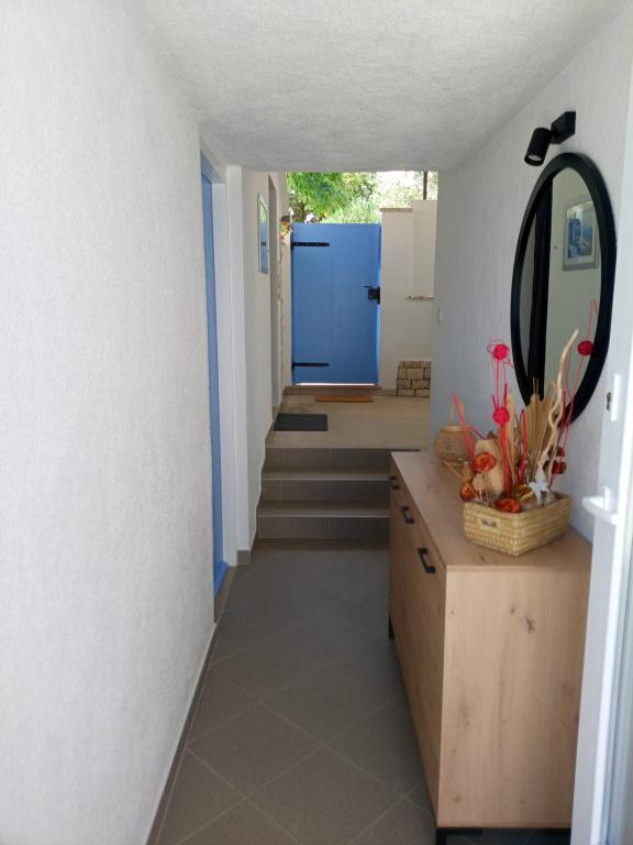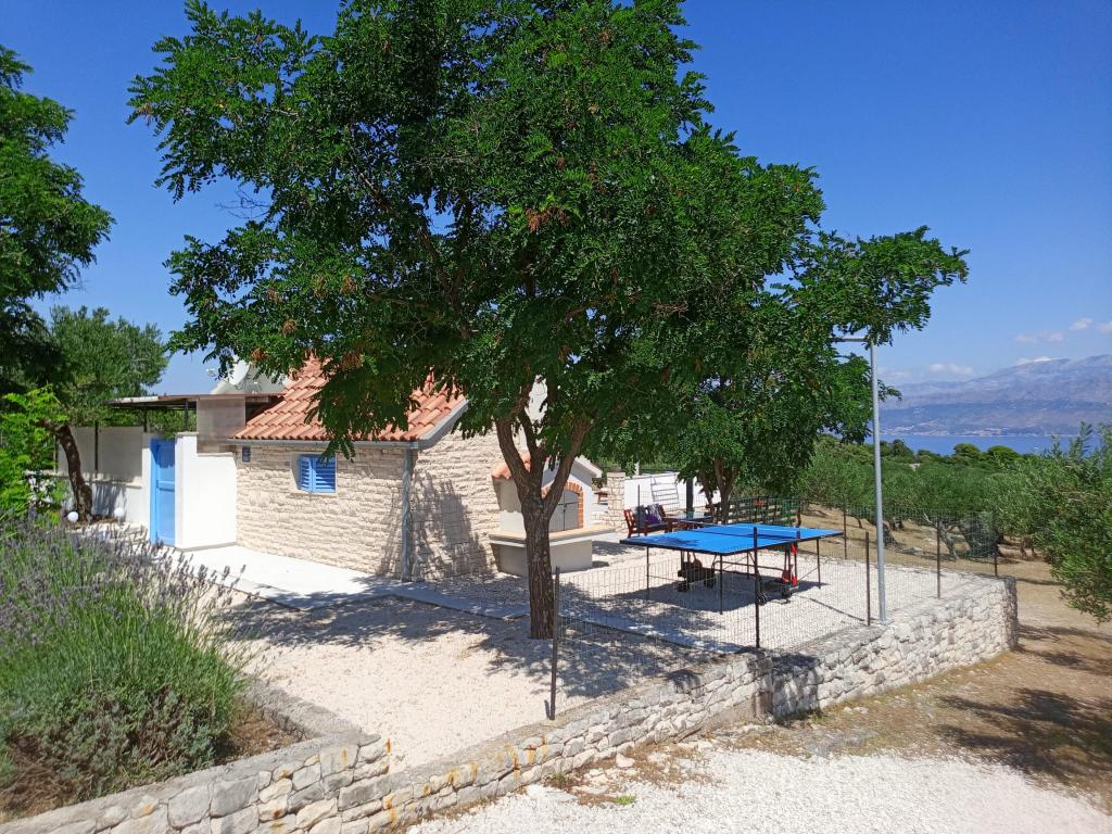 Holiday house "Marija" is located in an olive grove and is ideal for a peaceful vacation. It is 6 km from the town of Postira, and 1.8 km from the beautiful sandy beach of Lovrečina. The closest beach is Dučac Bay is located within 950 meters. The house can be reached via the main road and a turn onto a 700m long concrete road. The house is equipped with solar cells that provide electricity of 220 V. Hot water in the bathroom and sink is provided by a flow gas boiler.