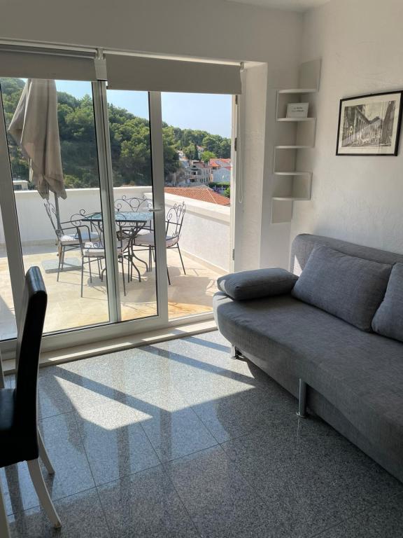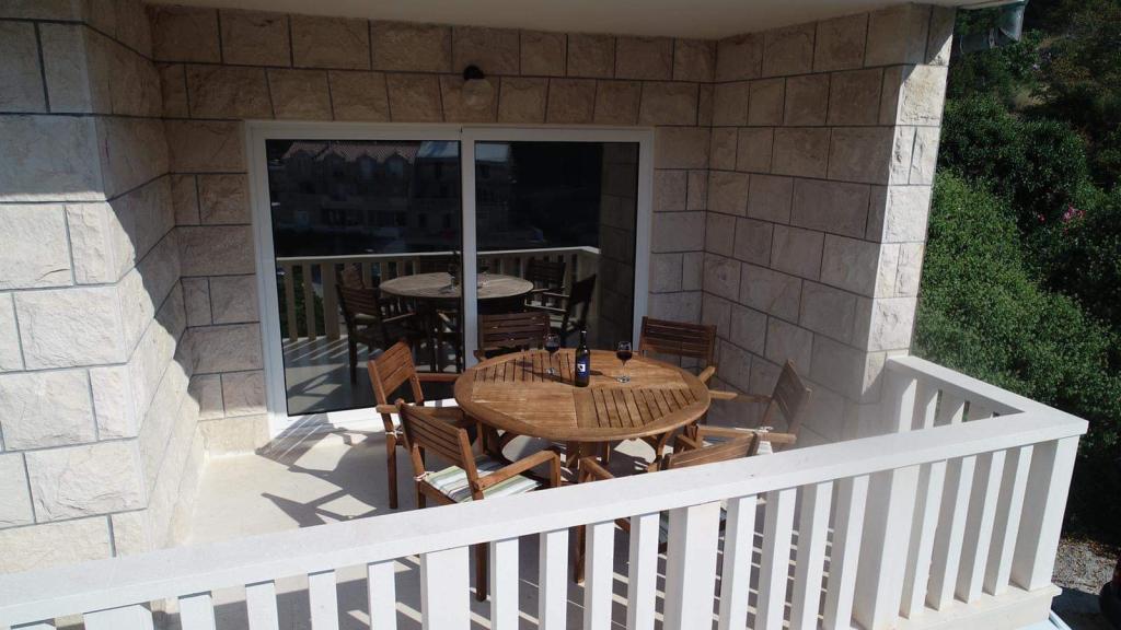 Apartment 6 for 2 persons with a beautiful view of the sea, sunny and very spacious with three bedrooms with double beds, living room with double bed, two bathrooms, massage shower, two air conditioners, induction cooker, dishwasher, washing machine , coffee maker, electric kettle, microwave and refrigerator. Terrace with fireplace, barbecue area and terrace overlooking the sea which have separate tables and chairs. TV is in the living room, and wireless Internet access is provided. It is equipped with dishes for preparing and serving food and drinks and cutlery in adequate quantities. It is located on the first floor of the house in the town center. It is located near the sea (40 m) shop (50 m), numerous beaches, restaurants, bars and other catering establishments. The price includes parking space in front of the house, use of the boat mooring, bed linen and towels, cleaning after departure and the use of children's bed if necessary