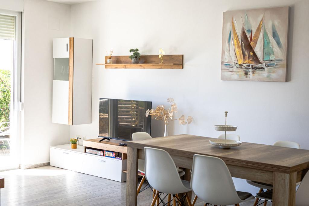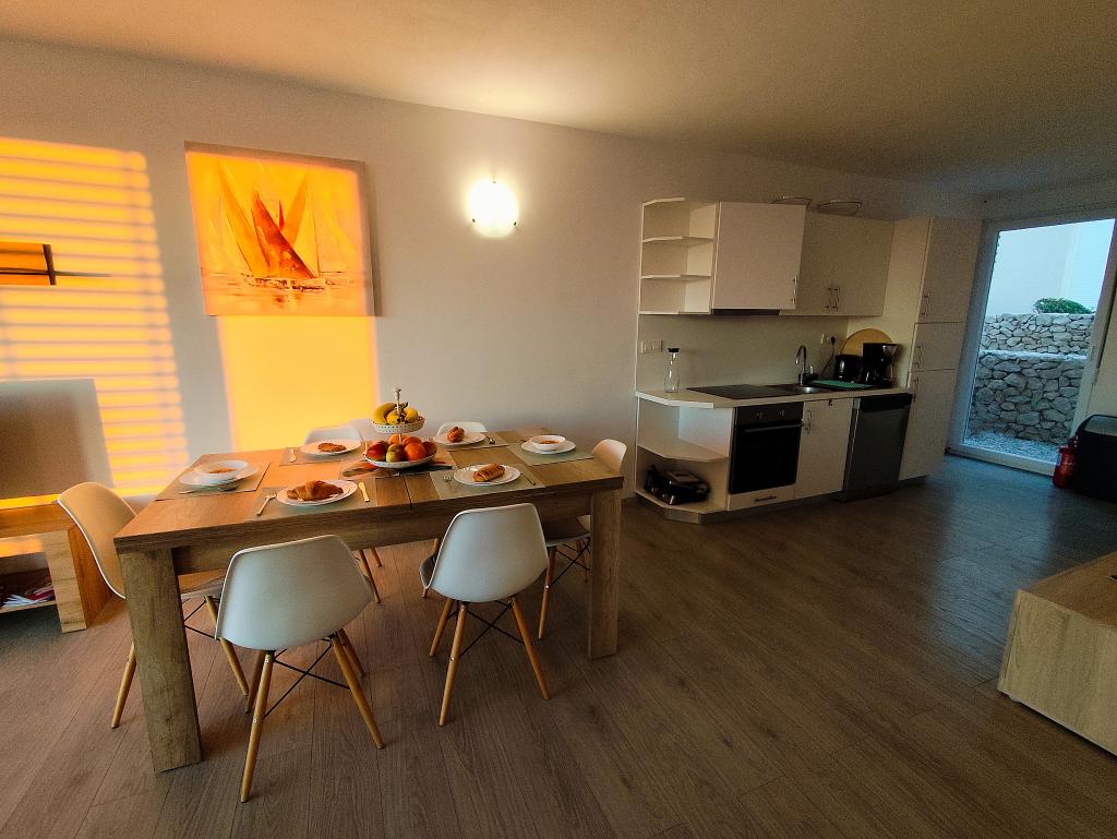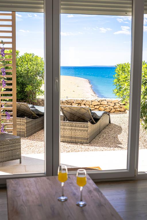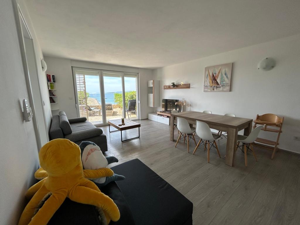 Apartment MORE I MIR is located in a quiet part of Povljana, Rastavac peninsula, which is only 150 meters from the sea and the sandy beach Trokut. The apartment is located on the ground floor and is fully equipped with all amenities for a pleasant vacation. The accommodation capacity offers 2 bedrooms with two bathrooms, a living room and a kitchen. Additional beds in the living room (pull-out sofa and armchair). The apartment is fully equipped with kitchen appliances, 3 air conditioners, 3 TVs. For apartment users, free parking and internet, a swimming pool, the possibility of using a barbecue, an outdoor shower and a common play area (slide, table tennis, etc.) are provided. The apartment has a private terrace and a garden with deckchairs and a sitting area with a view of the sea, 1st row. In the immediate vicinity there is a campsite, bakery, shop, restaurant. Povljana, due to its beautiful sandy and pebble beaches and clear shallow sea, offers a quality vacation for families; the center is 3.6 km away.