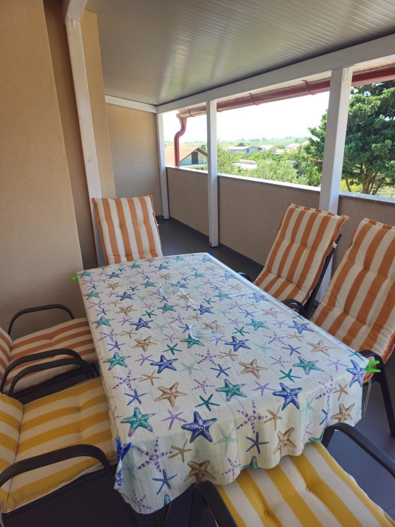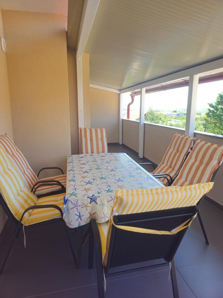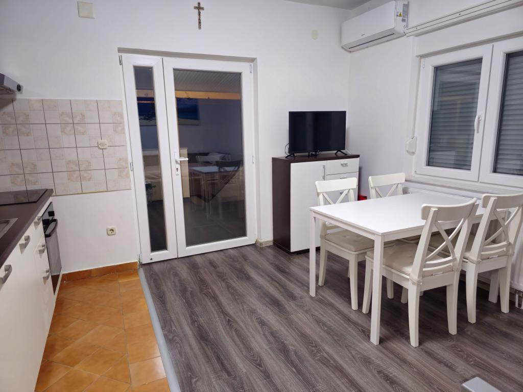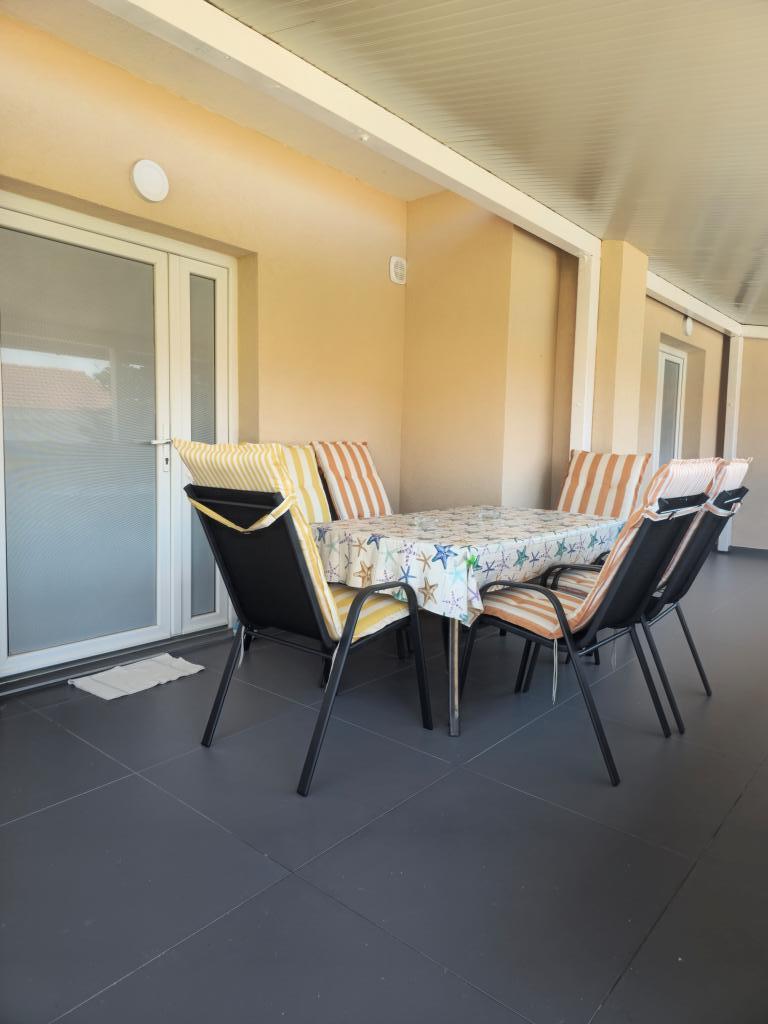 Fully and modernly equipped apartment with a large covered terrace in a quiet area of Povljana. The apartment has two bedrooms and a sofa bed in the living room. All rooms are air-conditioned. The large bathroom also has a washing machine. The kitchen is equipped with a dishwasher, electric stove, oven and large double fridge with freezer. WiFi, TV. Apartment Tia is located on the 1st floor of a family house with a fenced yard under video surveillance. The barbecue is located in the yard. The town center is only 100m from the apartment. The sandy beach is a 10-minute walk away, 2 minutes by car. Parking is provided in front of the house.