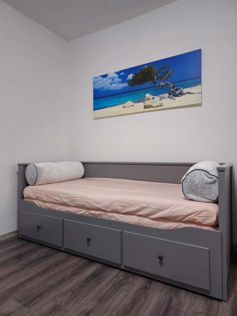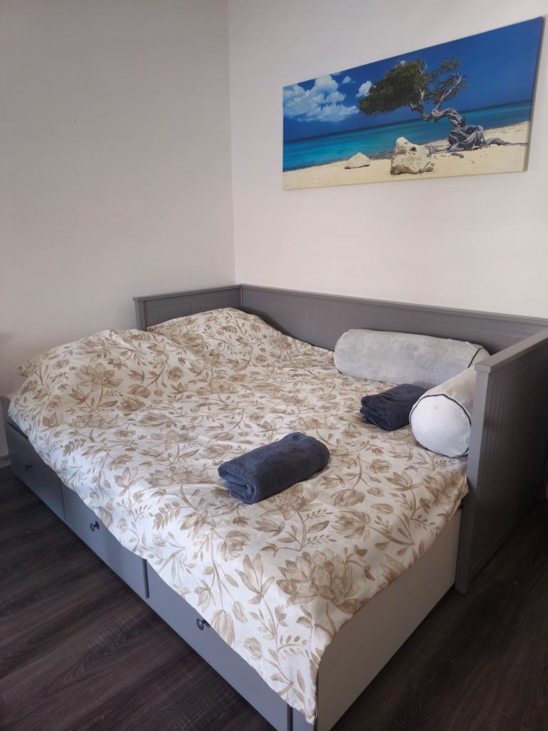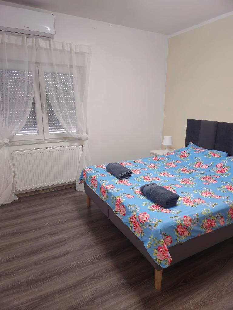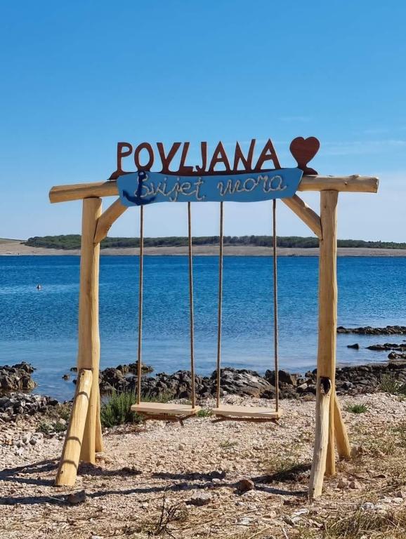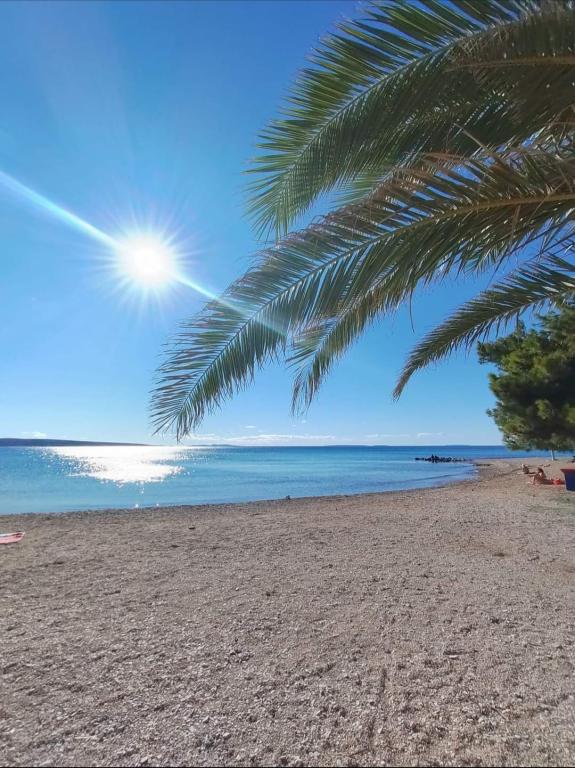 Fully and modernly equipped apartment with a large covered terrace in a quiet area of Povljana. The apartment has two bedrooms and a sofa bed in the living room. All rooms are air-conditioned. The large bathroom also has a washing machine. The kitchen is equipped with a dishwasher, electric stove, oven and large double fridge with freezer. WiFi, TV. Apartment Tia is located on the 1st floor of a family house with a fenced yard under video surveillance. The barbecue is located in the yard. The town center is only 100m from the apartment. The sandy beach is a 10-minute walk away, 2 minutes by car. Parking is provided in front of the house.