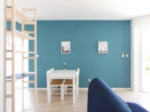 The apartment is part of a beautifully decorated house with a large garden. Everything in the apartment itself is decorated with moderation and is suitable for a vacation. The large terrace is accessible from both rooms and has a view of the sunset and is in the shade all morning, just ideal for a coffee with a view of the sea. The garden is a wonderful Mediterranean space full of pine trees, olive trees and immortelle with available deck chairs and garden furniture and stretches from the house to the beach. Ample parking is provided on the property. The photos fail to describe the comfort, cleanliness, light and all other qualities of this accommodation. The hostess is extremely kind.