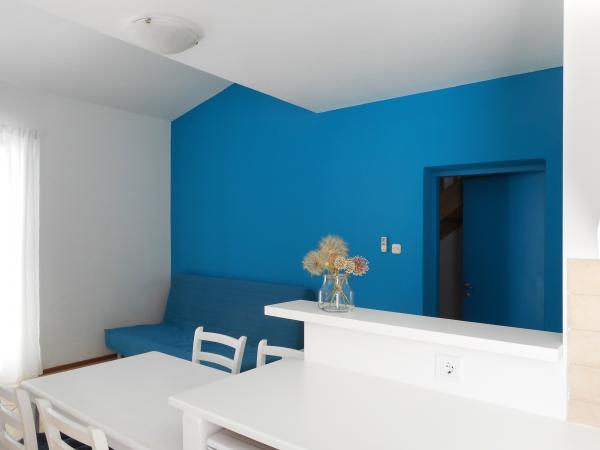 Apartments Lanterna offer six accommodation units in the immediate vicinity of the beach and the lighthouse. The facility is surrounded by a large garden full of greenery with swings for children. Each accommodation unit has a large terrace and almost all have a direct view of the sea. Parking is provided inside the yard. Pets are welcome.