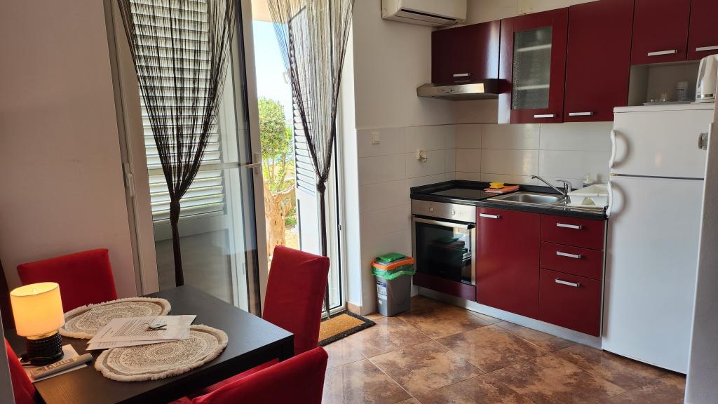 Fully furnished apartments next to the promenade and the beach, first row to the sea. Apartments on the ground floor have their own courtyards. The center of the village is 1000 m from the apartment. Cafes and restaurants are nearby, and a shop is a 10-minute walk away. . Apartment 7 (70619) is located at another location, at JJ Strossmayera Street 31.