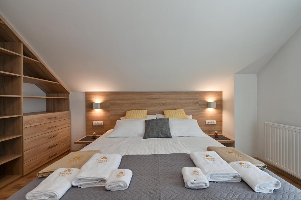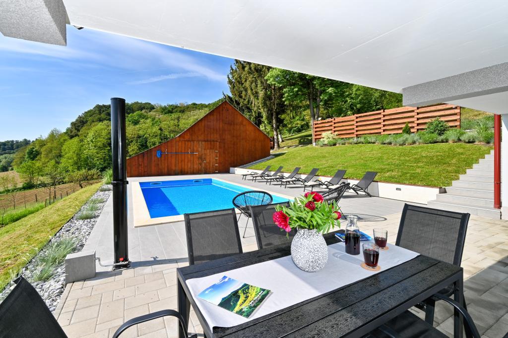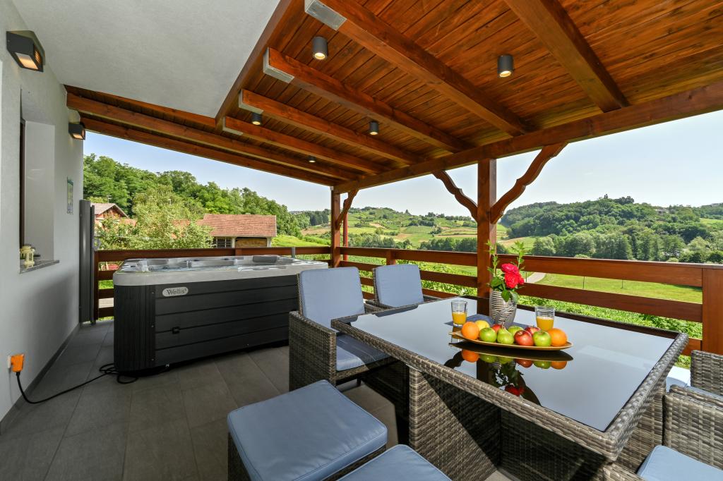 The house offers all the benefits and needs of a modern guest (wireless internet, five SMART LED TVs, Netflix, central air conditioning system, smoke alarm, CO2 detector, external video surveillance). Sunrise Hill is located about fifty km from Zagreb and 1.5 km from the center of Pregrada. There is also an infrared sauna inside the house and on the outside covered terrace and a jacuzzi which is in operation from 01.10. until 30.04. (outside the season of using the outdoor pool). And for the youngest, there is a richly equipped children's playroom (billiards, table football, darts, board games, PS4, crayons and drawing blocks...)