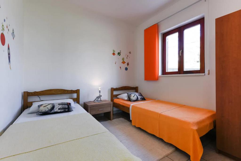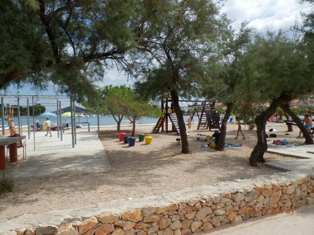 New, beautifully furnished apartments on the ground floor of a family house, just a few steps from the beautiful Jaz beach, which carries the Blue Flag and has a volleyball court. There are restaurants and cafes in the immediate vicinity, and a children's playground is only twenty meters away. Each apartment has its own large terrace with a sea view. The apartments have two bedrooms, a fully equipped kitchen, a bathroom, a living room, an outdoor barbecue and private parking. A welcome gift is included in the price