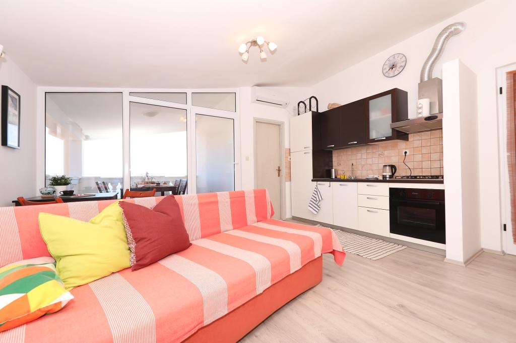 Neat and clean apartment, wonderful view of the sea from the terrace of the apartment. Peaceful and pleasant environment. The apartment is spacious and beautiful. In the apartment you have complete peace and no disturbance from the host. The chirping of birds and the smell of the sea is stunning and you know that you are in a great vacation spot. Emma