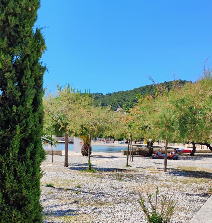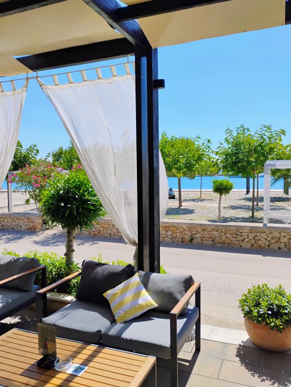 New, beautifully furnished apartments on the ground floor of a family house, just a few steps from the beautiful Jaz beach, which carries the Blue Flag and has a volleyball court. There are restaurants and cafes in the immediate vicinity, and a children's playground is only twenty meters away. Each apartment has its own large terrace with a sea view. The apartments have two bedrooms, a fully equipped kitchen, a bathroom, a living room, an outdoor barbecue and private parking. A welcome gift is included in the price