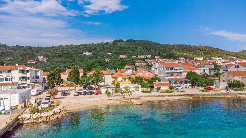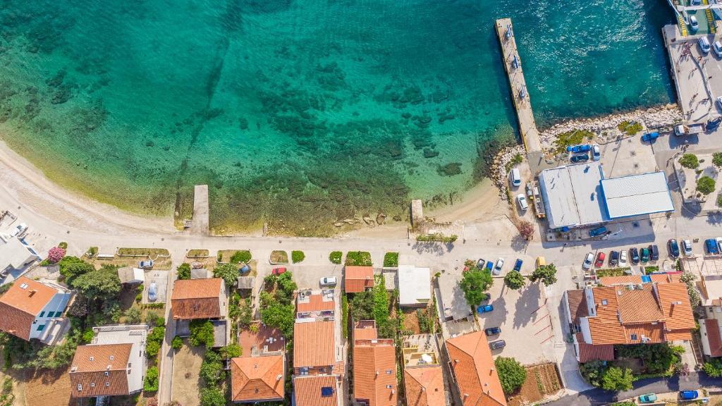 The Little House by the Sea holiday home is located in Preko on the island of Ugljan, in the immediate vicinity of the ferry port. It consists of a kitchen and living room, a bathroom, two bedrooms and a large terrace with a sea view. The house can accommodate a maximum of 6 people. The rooms have double beds measuring 180*200 cm, and the sofa in the living room can be extended into a bed measuring 160*200 cm. The kitchen is fully equipped with dishes, and guests have a stove with oven, refrigerator, dishwasher, coffee maker and kettle at their disposal. Free WiFi and Netflix are available. There is air conditioning in the living room. Among other household appliances, guests have a washing machine at their disposal. Parking is available on site, and guests can also use the outdoor barbecue in the yard. There is a small sandy beach in front of the house, and the town center with numerous restaurants and cafes is about 700 m from the property. The nearest shop is only 50 m from the house.