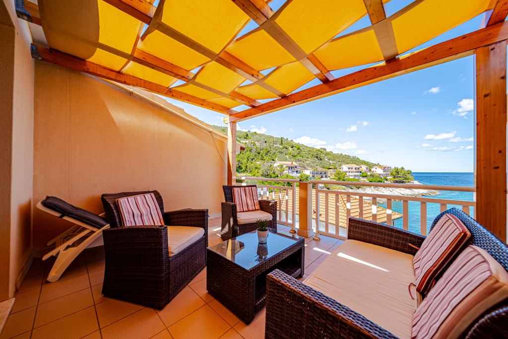 The location is unique, the sea is excellent, the apartment is clean, spacious terrace, excellent view of the sea next to the cafe on the terrace with seating, very friendly hosts, tavern - pizzeria on location with very tasty food and very friendly service. Highly recommended!
