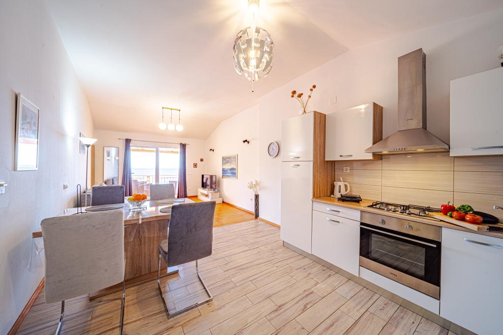 The apartment is great. In a great location, with a beautiful view of the sea and the sunset. It is in a quiet place, which is great for a relaxing holiday. The hosts are very friendly and hospitable. The apartment is big enough for two people, it is clean and tidy. There is a very large barbecue in the back. The beach is very close, just across the road. There is also a pizzeria next door for a great dinner with a view of the sunset. We were very satisfied with the apartment for the second time and would be happy to return.