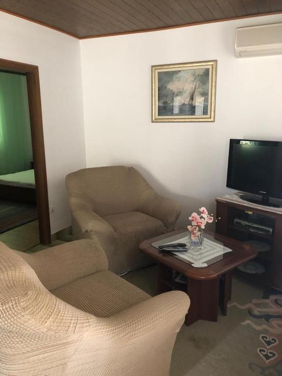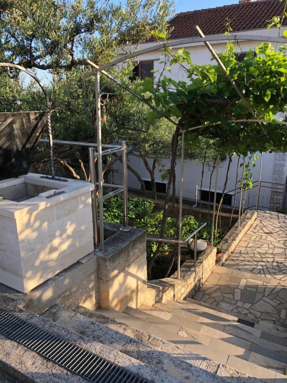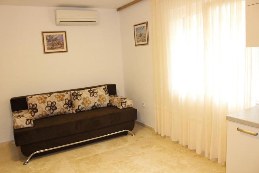 Located in the first row to the sea, just 30 meters from the beach and 6 km from the center of Primošten, this apartment offers the perfect vacation. It consists of a bedroom, a cozy living room with a kitchen and a bathroom with a shower. Although the apartment itself does not have a direct view of the sea, there is a private corner with a table and chairs in front of the entrance. A special advantage is the spacious 300 m² garden in front of the house, which is available to guests for sunbathing, relaxing and using the outdoor shower. Parking is provided.