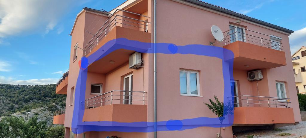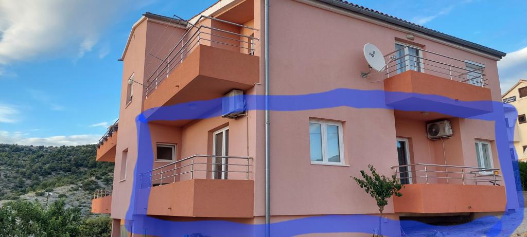 Apartments Jurinovi are located in Dolac, 4 km before Primošten from the direction of Šibenik towards Split. Dolac is a quiet location for all guests who like peace and quiet, not the hustle and bustle like in the center of Primošten. The distance from the sea is 500 m, or a few minutes walk. The beaches are about 500 m away. The road leading to the sea is uphill because we are located on a hill and is not recommended for guests who do not like walking. You can also use a car to go to the beach, and parking along the road and the sea is free. Two apartments of 45 m2 each are located on the ground floor and have a sea view. Each apartment has a balcony, a fully equipped kitchen, air conditioning, internet and parking that is not in the shade.