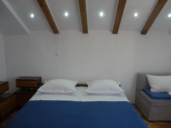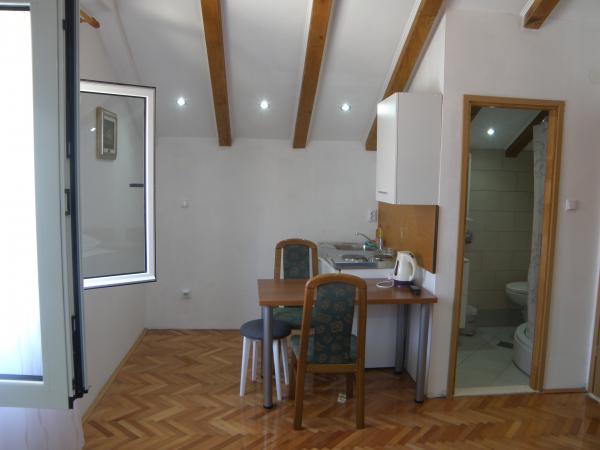 Lovely and modern apartment for four or five in the center of Primosten with parking for one car, a few minutes to the beach, a few minutes to the main square, markets, shops. Comfortable air-conditioned, you can use free wi-fi. It consists of two floors. At the top are two bedrooms and a small bathroom. In one room is double bed and one twin, both bedrooms lead to a small balcony. In the lower part of the kitchen, dining room, a sofa and a veranda. Located in a quiet part of town, and everything is at your fingertips - perfect for an ideal vacation. Studio Thomas at Put mulberry 19, in a quiet old town. Double room with an extra bed is enriched with kitchen corner and bathroom. It is equipped with television and air conditioning is in the hall and its excellent insulation cools the room in a very short time. Parking is in the back streets of Gregory of Nin, next to the park.