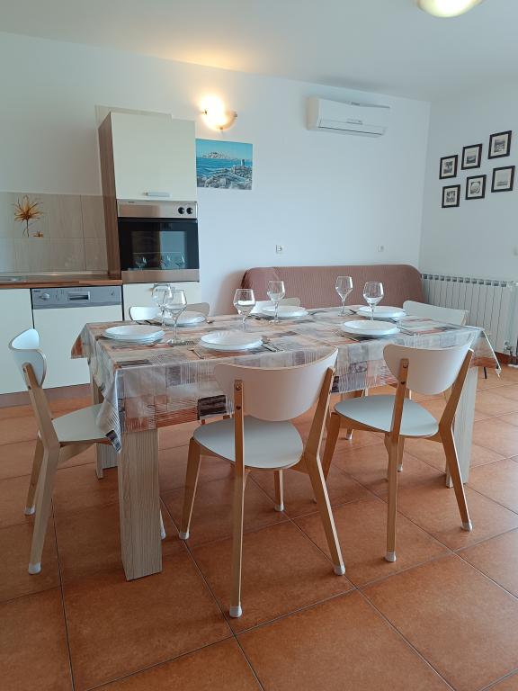 In the newly built family house there are two fully equipped four-star apartments. Parking, internet and air conditioning are included in the price. It takes 7 minutes to walk to the town center, to the beach 5 minutes and to the shop for 1 minute.