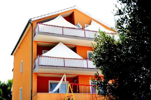 Apartments with large terraces on two sides and a wonderful view of the complete Primosten waterfront. It is 600m from the first beach-1200 steps (7 mins). It is located 15 min walk to the town center and all the facilities in Primošten. The location provides the peace of the everyday crowd in the place. A2-studio apartment-MOZART-balcony 6m2-view on the sea and the first - possibility of extra bed for small child-equipped kitchen A4-HAYDN-two bedrooms, one of which is connected to a kitchen, all rooms have a balcony, - (first 9m2-sea view and Primošten, second 6m2-look on the hinterland) additional bed for a small child, fully equipped kitchen. A4 2-BEETHOVEN - our largest apartment (65m2) - two bedrooms completely separate - one of which has two double beds, a living room with a sofa connected to the kitchen (fully equipped) and a dining room for six persons and a 16m2 balcony overlooking the sea and Primošten. All rooms have a balcony. PARKING in the fenced yard. GRILL in shade of olives for up to 12 people. AIR C.