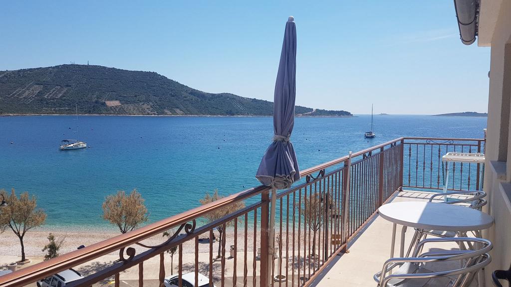 The facility is located right next to the beach. On the 1st floor of a private house. It consists of 2 bedrooms and has a capacity for 3 people. The terrace is positioned so that you can see the whole panoramic view of the whole of Primosten.