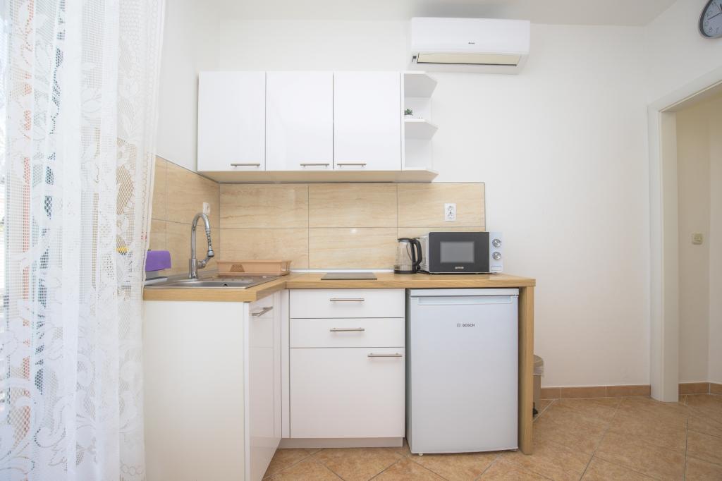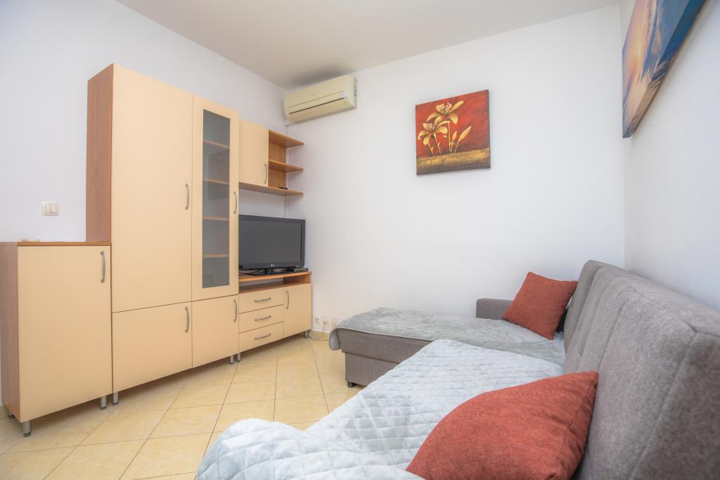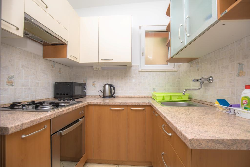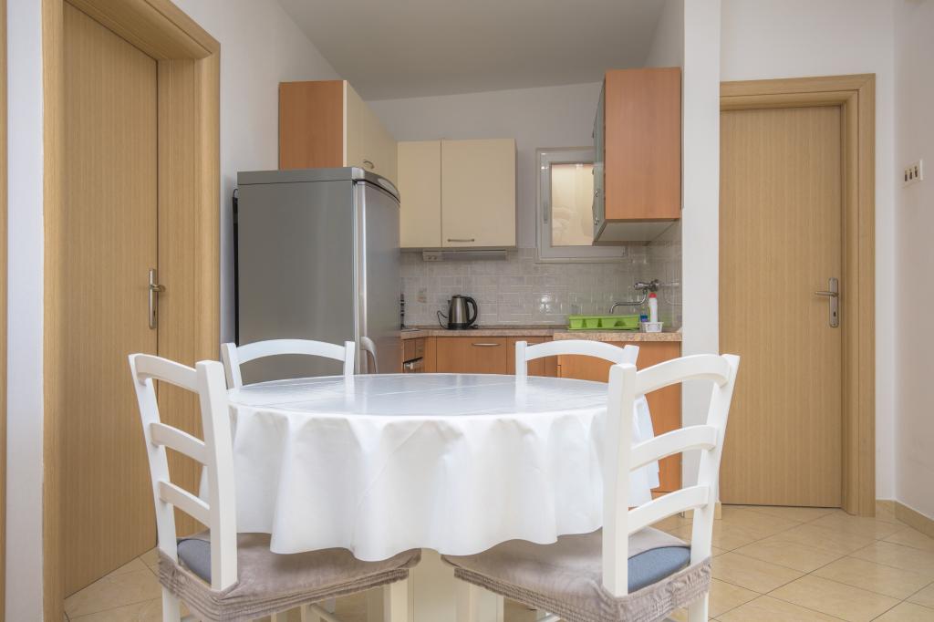 We stayed in A4 apartment for 2 weeks (2 adults + 3 children) and i can only recommend it. It is very clean, has 2 comfortable bedrooms, fully equipped kitchen,living room with sofa and TV and balcony where you can enjoy your coffee and the sea view. It is located in quiet neighborhood, there is beach (with bar) in 2' and lot of other beaches in walking distance. There are few markets around in ~5 minute driving distance. The hosts are very kind, always helpful and they produce first class olive oil