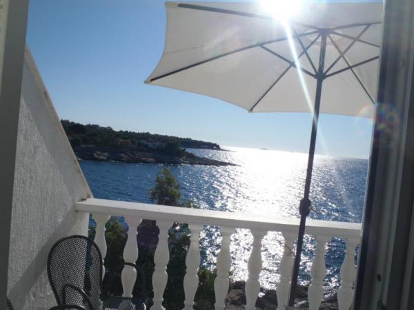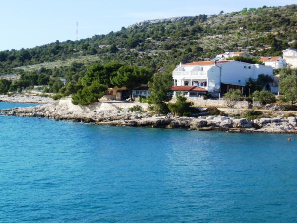 Apartments are located directly on the beach in small place Dolac, 3 km away from the center in Primosten. Bellow the ground floor there is konoba which offers fresh fish and other local specialties. Also, because of the distance from the center, every morning arrives bakery van with fresh bread, buns and donuts.