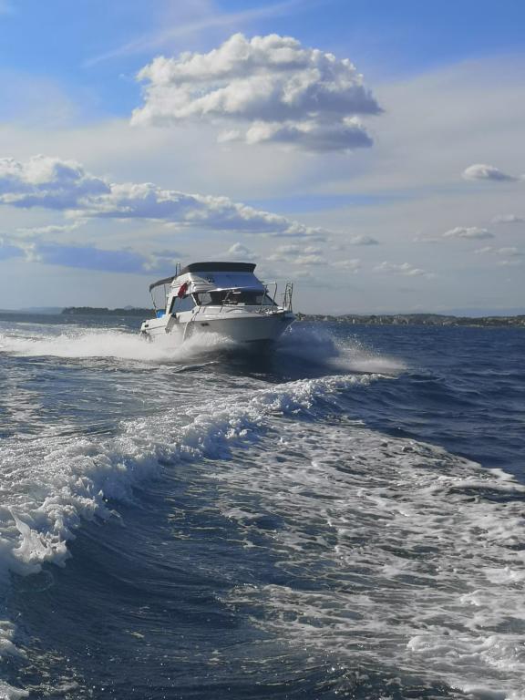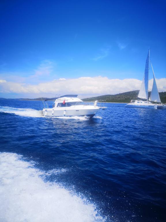 Residential tax is included in price.Welcome drink, outdoor grill, organized boat trips with a skipper. In the nearby camp, pedal boats can be rented and water slides can be enjoyed. Several excellent restaurants offering Dalmatian specialties are nearby.